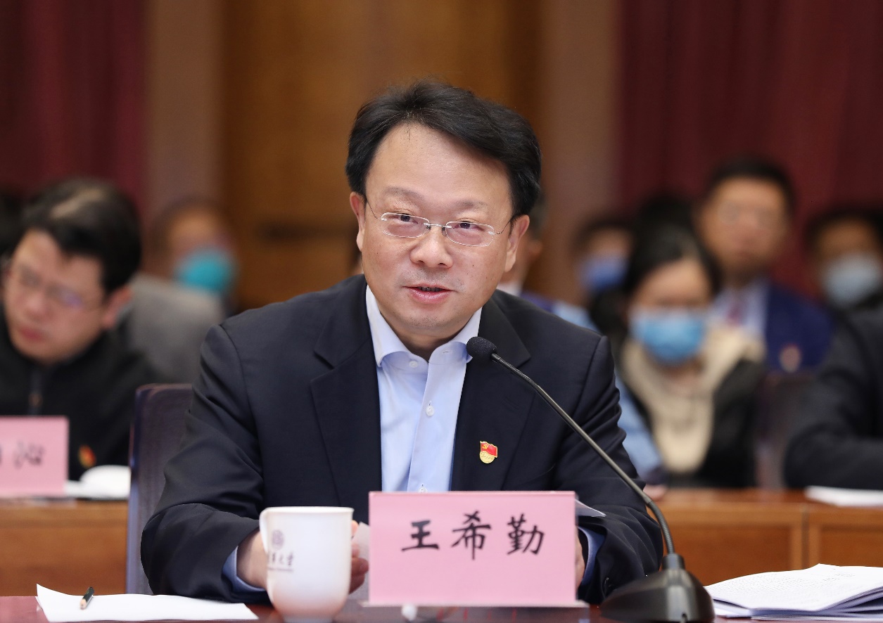 王希勤表示,近年来,学校深化综合改革,深入落实习近平总书记和党中央对学校的要求,各方面都取得很大发展。一是学校坚持和完善党委领导下的校长负责制,强化学校党委管党治校主体责任,为党管办学方向、党管干部、党管人才、党管意识形态、领导改革发展、落实全面从严治党提供了坚强的制度保证;二是学校领导班子坚持和发扬“一张蓝图绘到底”的优良传统,扎实推进学校改革发展,团结一心、默契互信,踔厉奋发、勇毅前行;三是二级单位党委、党支部等全校各级党组织充分发挥战斗堡垒作用,广大党员充分发挥先锋模范作用,团结带领广大师生员工做学校改革发展的见证者、参与者和创造者,有力地推动了学校各项事业的发展。