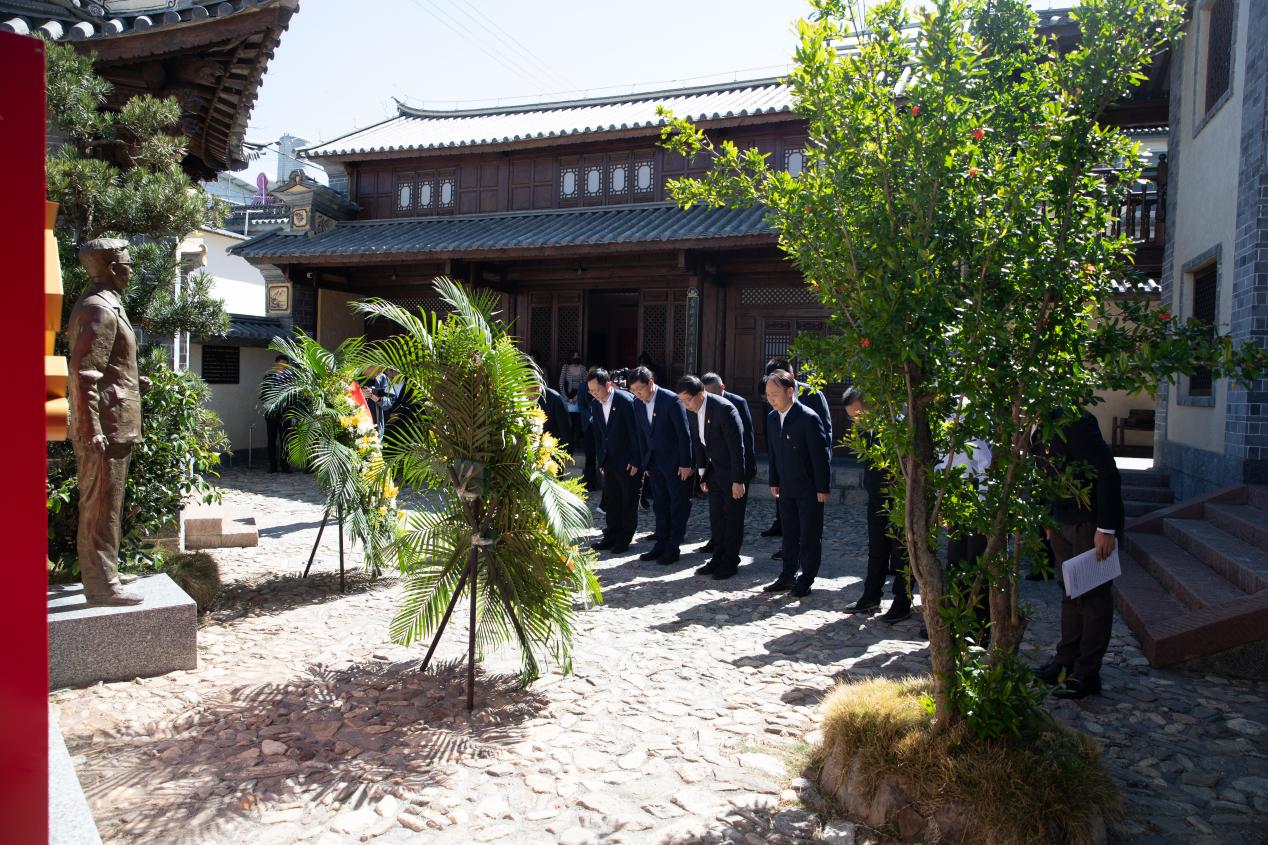 在云南期间,邱勇、张治礼一行调研参观了大理洱源施滉烈士事迹陈列馆,拜祭革命烈士施滉,寄托无限敬意和绵绵哀思。施滉1900年出生于云南省洱源县,1917年进入清华学校读书,是清华最早的共产党员之一。他用一生实践了“真理所在,即趋附之”的誓言,用生命塑造了一名共产党员崇高的革命气节、诠释了共产党员的初心和使命,被誉为“清华最有光荣的儿子”。