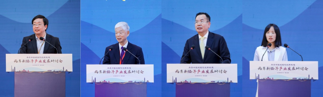 本次研讨会以“共享中国式现代化新机遇”为主题,旨在探讨中国式现代化进程中,两岸新经济产业的前景、挑战和机遇,促进两岸企业向智能、数字、绿色等方向提质升级、创新发展,推动两岸在新兴产业领域的深度融合。来自两岸的百余位专家、学者和企业家参会,共同为两岸新经济产业繁荣发展集思广益、建言献策。清华大学两岸发展研究院常务副院长王治强主持研讨会。