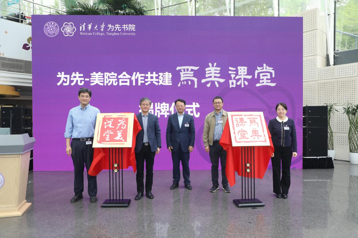 “有美育,更清华”。活动现场,美术学院院长马赛、欧阳证、美术学院创意设计课程任课教师邱松、为先书院副院长王秀梅共同为“为美课堂”揭牌,王希勤登台见证揭牌仪式。为先书院一直将“优秀的人文素养”作为科技创新领军人才培养的重要素质和能力,和美术学院共同打造全新的“为美课堂”。