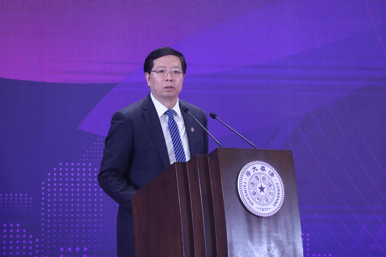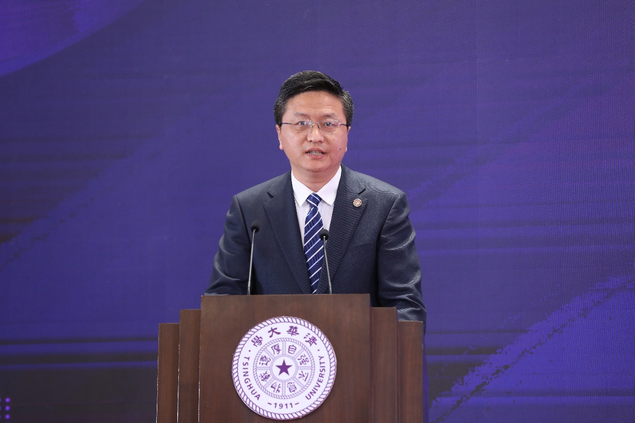 会上,怀进鹏、张玉卓、余剑锋、袁洁、邹磊、邱勇、王希勤、姜培学共同为清华大学国家卓越工程师学院揭牌。