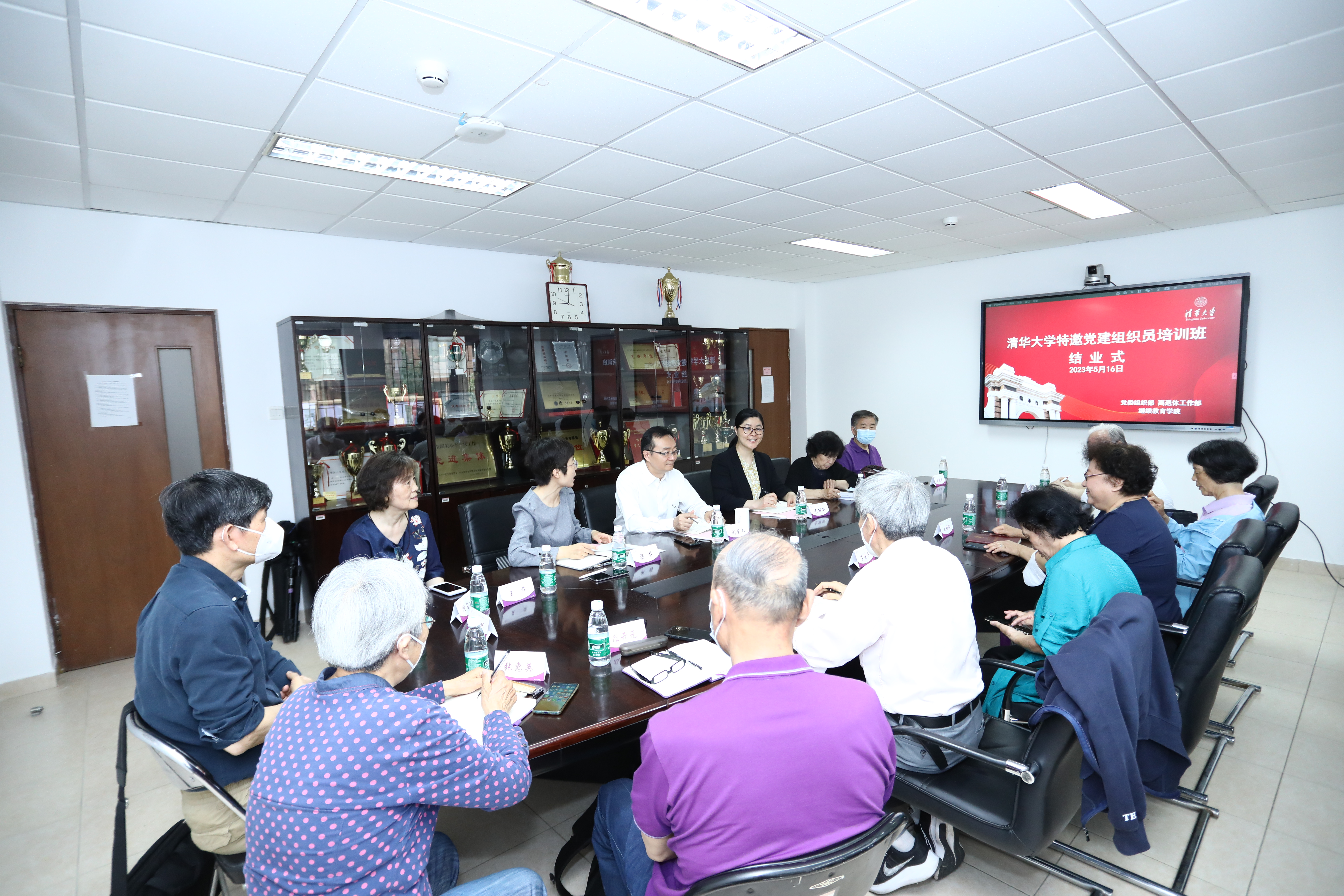 清华大学特邀党建组织员培训班由党委组织部、离退休工作部主办,继续教育学院承办。来自学校各单位的16位特邀组织员参加培训,他们平均年龄达到70岁。2022年3月开班至今,特邀组织员共同学习了包括“学习习近平总书记重要指示精神”“党章学习解读”“歌声里的党史”“如何做好党员发展工作”“当代大学生思想状况与特点”等课程,实地走访清华大学校史馆、核研院和昌平科研基地调研学习,并与新上任组织员就如何与发展对象谈话、党员发展材料审阅等开展小组研讨。