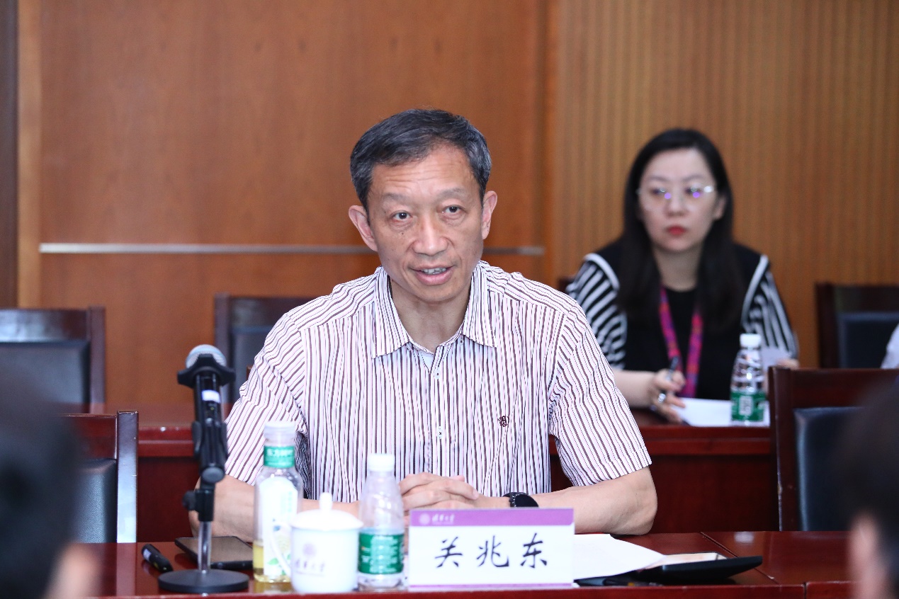 清华大学副总务长、绿色大学办公室主任关兆东从绿色学校创建背景及概况、实施方案、建设实效三方面向专家组汇报了绿色学校创建工作总体情况。