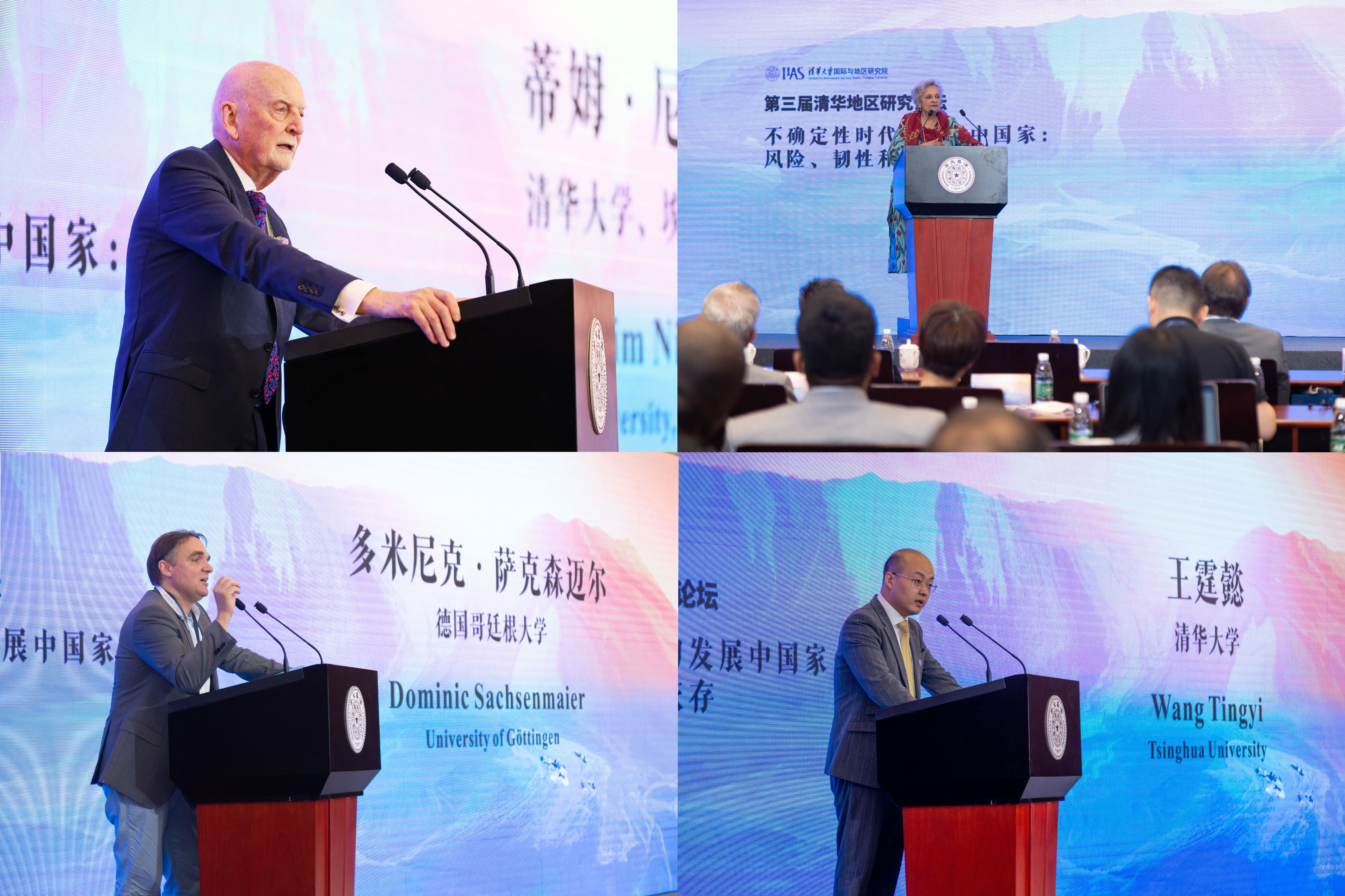 蒂姆·尼布洛克、苏加塔·帕特尔、多米尼克·萨克森迈尔、王霆懿分别作主旨发言(从左至右,从上至下)