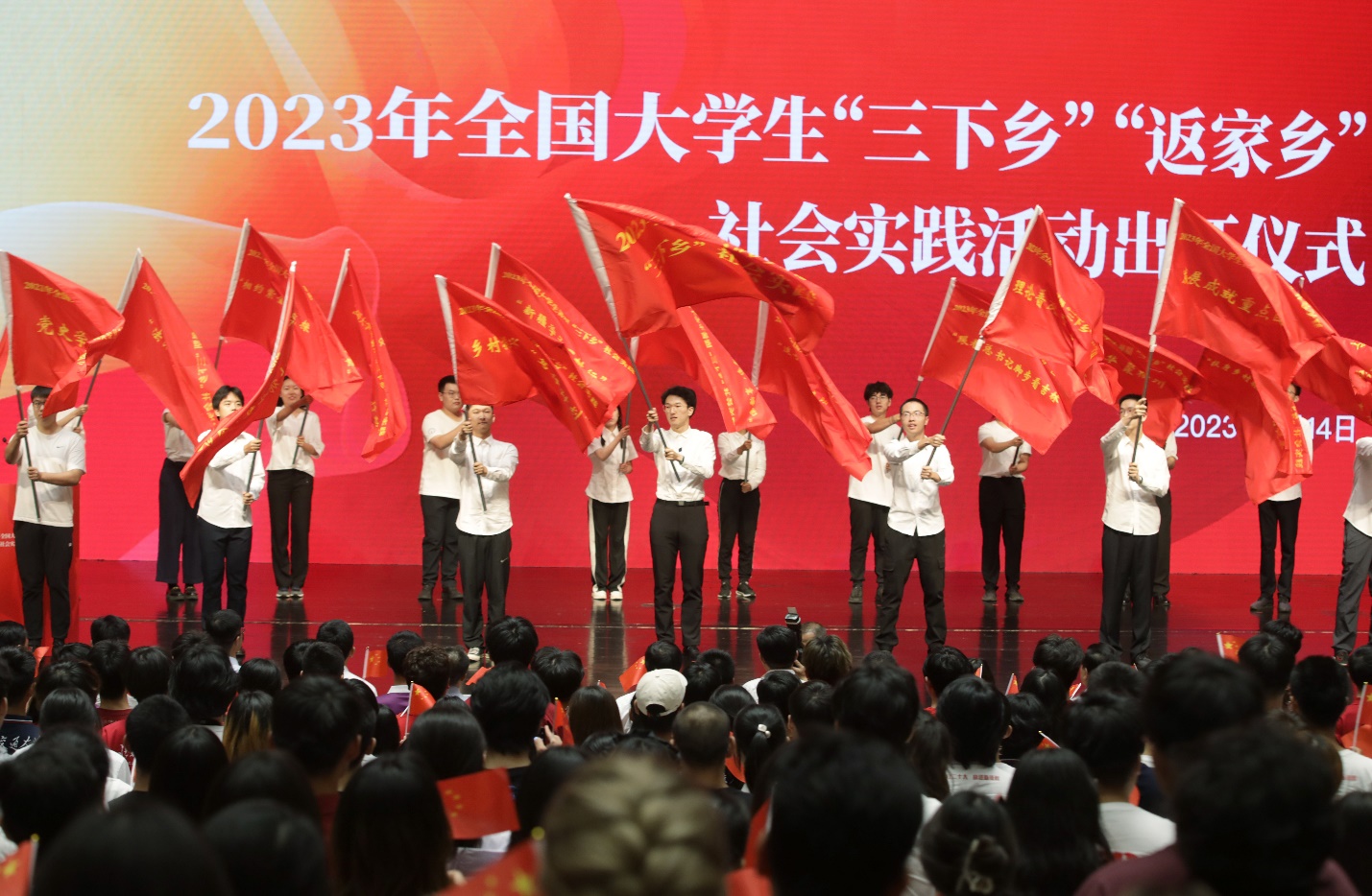 阿东指出,近年来共青团认真贯彻落实习近平总书记关于青年工作的重要思想,充分发挥实践育人优势,持续深化“三下乡”品牌,成功探索“返家乡”项目,组织引导广大青年学生在社会实践中受教育、长才干、作贡献,取得良好政治效果和社会效果。他勉励同学们牢记习近平总书记的殷切期许,通过走近社会、躬身实践,不断夯实坚定理想信念的思想根基、激发勇担时代重任的历史主动、增强发扬斗争精神的内在自觉、厚植保持奋斗激情的力量源泉,用青春的激情奏响“清澈的爱、只为中国”的时代强音,用青春的行动践行“请党放心、强国有我”的铮铮誓言。