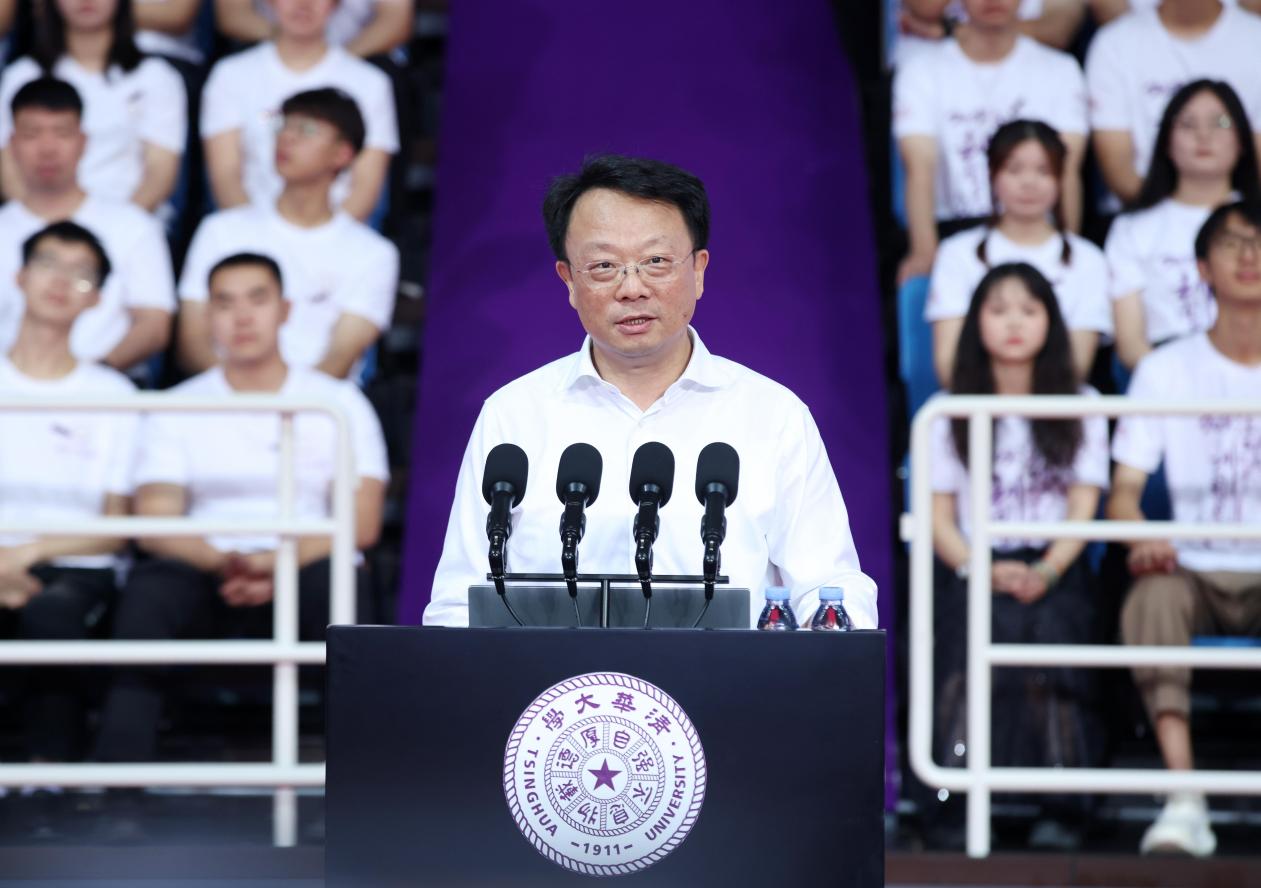 王希勤对同学们加入清华大学表示欢迎和祝贺。他带领大家回顾了党的二十大对新时代新征程推动高质量发展的战略部署,学习了党和国家对高等教育的新要求,并介绍了清华大学百余年发展历史和历久弥新的清华精神文化。