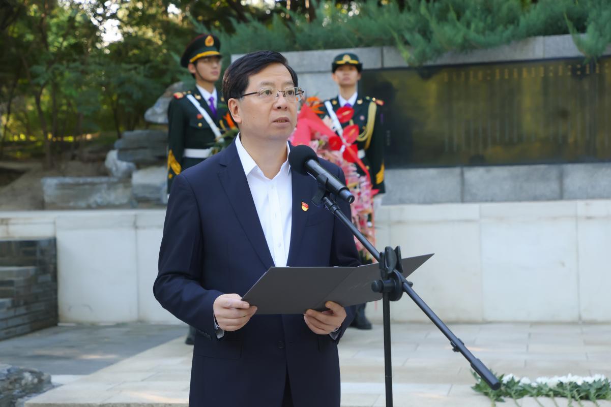 校党委书记邱勇代表全校师生向为了新中国诞生和人民幸福抛头颅、洒热血的英烈们,致以沉痛的哀悼、深切的缅怀和崇高的敬意。邱勇表示,清华诞生于国家内忧外患的深重苦难中。在清华光荣革命传统和优良文化传统的熏陶下,一代代清华人在我国革命、建设、改革和新时代的伟大实践中,用自己的实际行动自觉传承着清华精神、践行着报国志向。回望百年党史,一代代革命先烈赴汤蹈火、矢志不移,用鲜血和生命书写了气壮山河的英雄史诗。我们要赓续红色血脉,把革命先烈流血牺牲打下的红色江山守护好、建设好,努力创造不负革命先辈期望、无愧于历史和人民的新业绩。