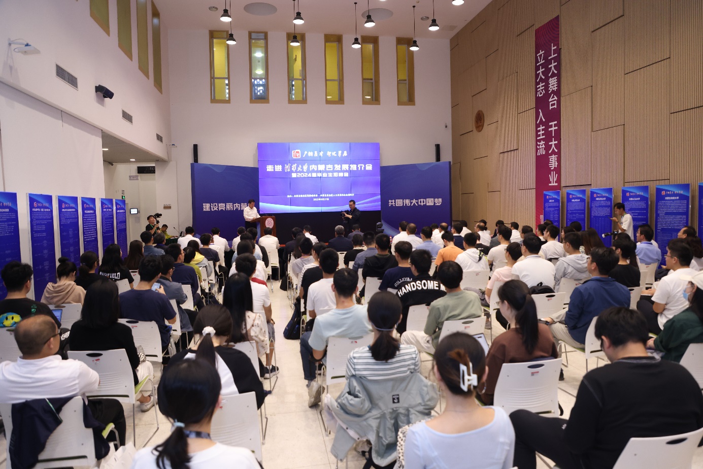 宣讲会结束后,内蒙古自治区12个盟市以及区属高校、重点企业等30余家重点企事业单位举行了招聘双选活动。自治区党委组织部副部长张秦,自治区人力资源社会保障厅副厅长王林,自治区教育厅副厅长王敏等嘉宾参加相关活动。