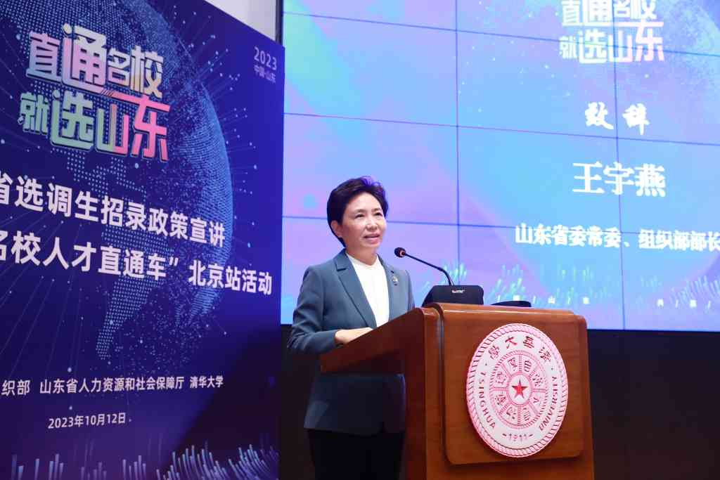 王宇燕在宣讲中整体介绍了山东省经济社会发展现状和人才引进政策。她表示,山东经济实力雄厚,区位优势突出,充满机遇与活力。山东非常重视和需要人才,组织人社部门为青年人才来鲁发展提供了有力的政策支持。“大山东”为广大青年学子提供了奋斗和圆梦的大舞台,真诚欢迎清华同学到山东安居乐业。
