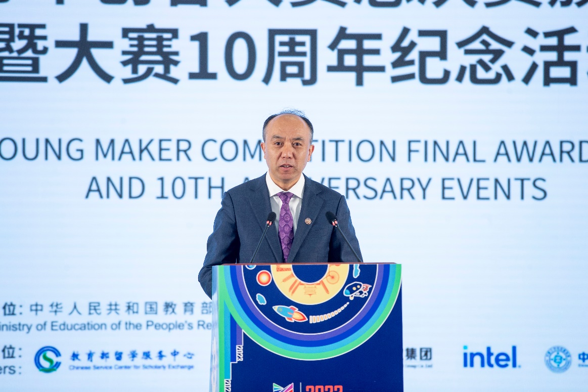 王希勤表示,十年来,在中美双方各界的共同努力和支持下,中美青年创客大赛已成为重要的跨文化共创平台,为促进中美两国人文交流、推动两国青年关注人类未来福祉发挥了重要作用。中美青年创客大赛是清华大学参与青年创新与教育领域国际合作的标志性项目。清华大学始终关注人类面临的重大问题和共同挑战,未来将继续主动承担国际责任,推动学术交流、思想交汇、文化交融。为推进大赛继续弘扬“合作、开放、共享”的创客精神,王希勤代表清华大学提出倡议,希望大赛鼓励全球视野与本地行动,促进学科交叉与多元参与,倡导首创精神与动手实践,关注共同愿景与社会价值,并祝愿青年创客以大赛为起点,胸怀大局,勇担使命,为促进中美两国人文交流、世界和平与发展作出更多贡献。