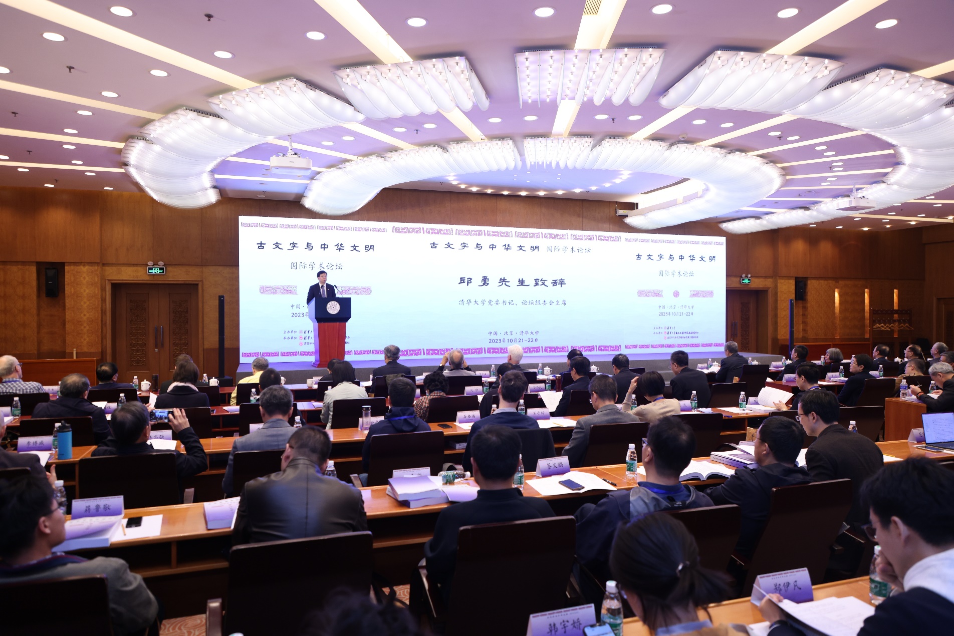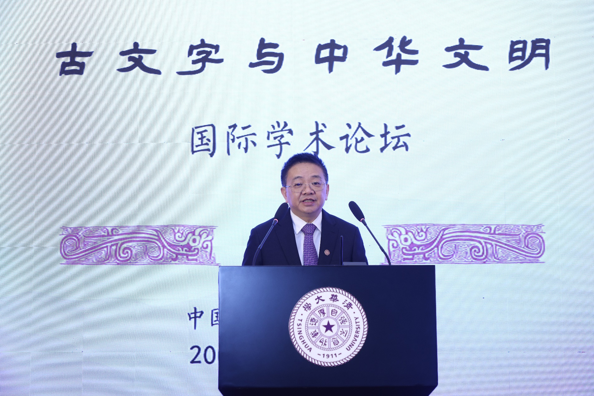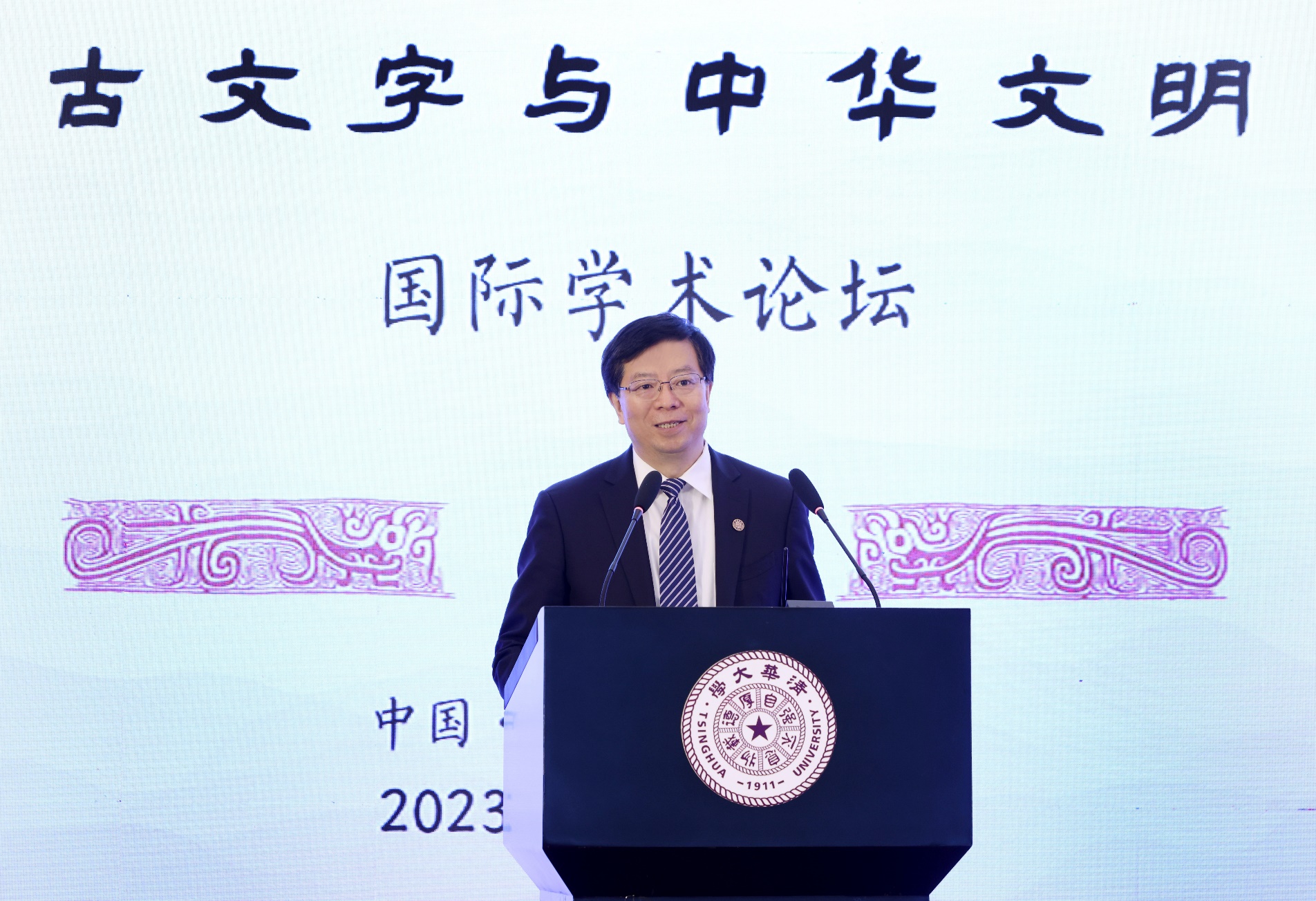 邱勇在致辞中向长期关心支持清华大学发展、清华人文学科建设的各界朋友致以衷心感谢。邱勇表示,近日召开的全国宣传思想文化工作会议首次提出并系统阐释了习近平文化思想,为在新起点上继续推动文化繁荣、建设文化强国、建设中华民族现代文明提供了强大思想武器和科学行动指南。中国的大学作为中华优秀文化传承弘扬的重要载体,要努力成为促进中华优秀传统文化创造性转化、创新性发展和人类文明繁荣进步的重要力量。清华自建校之初就非常重视对“冷门绝学”的研究工作,近年来,学校通过成立出土文献研究与保护中心、培养高水平研究人才、积极推动古文字跨学科研究等,取得一批重要学术成果。相信此次论坛定会深化和拓展古文字研究的国际学术交流合作,促进中华文明与世界各文明交流互鉴,清华古文字研究也定会秉承“中西融会、古今贯通、文理渗透”的办学风格,赓续历史文脉,谱写时代华章。迈上新征程,清华大学将深刻理解“坚持把马克思主义基本原理同中国具体实际相结合、同中华优秀传统文化相结合”的重大意义,深刻把握“明体达用、体用贯通”的理论内涵和实践要求,与社会各界同仁一道,努力筑牢人类文明新形态的文化根基,为中华文明重焕荣光、世界文明交相辉映作出新的更大贡献。