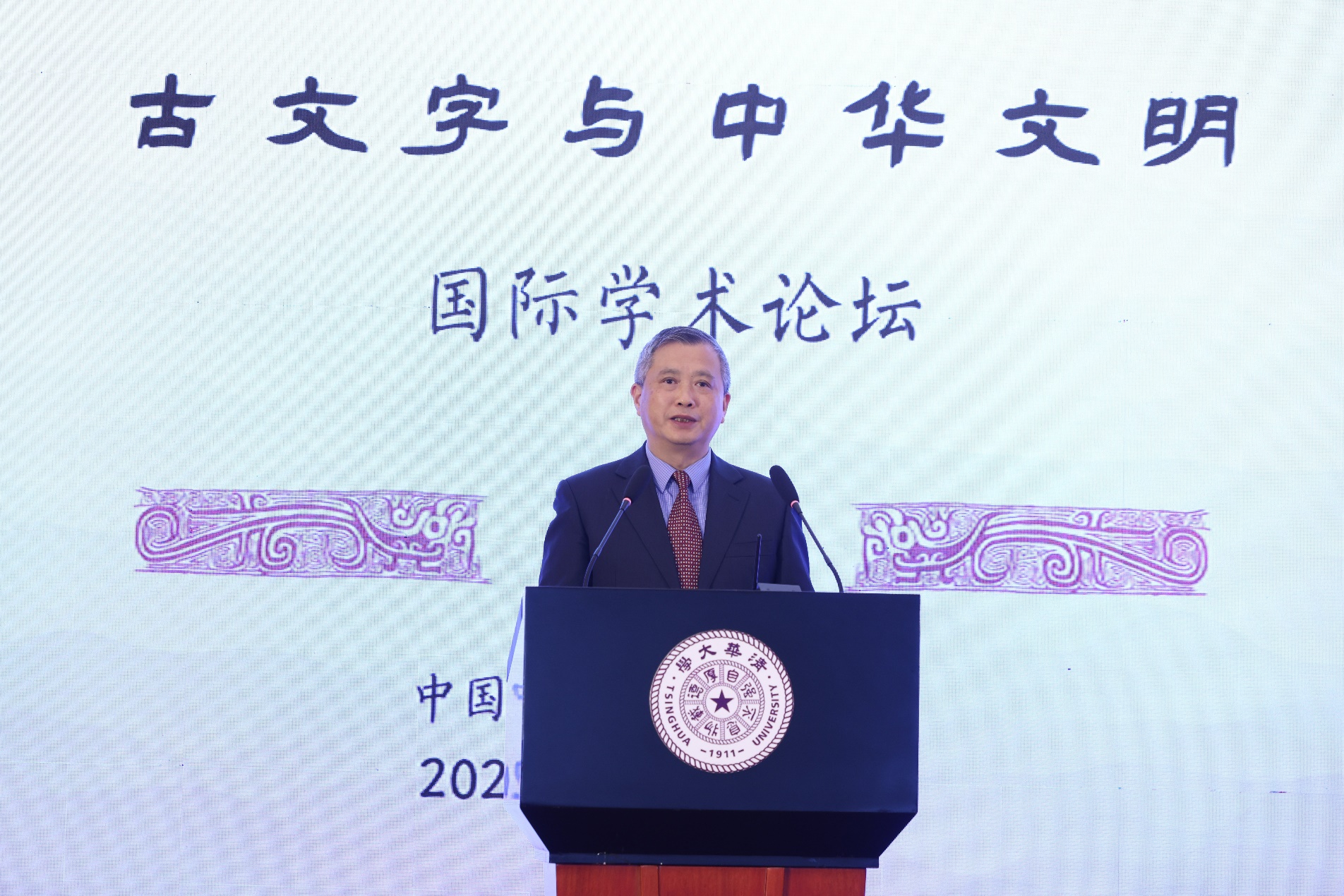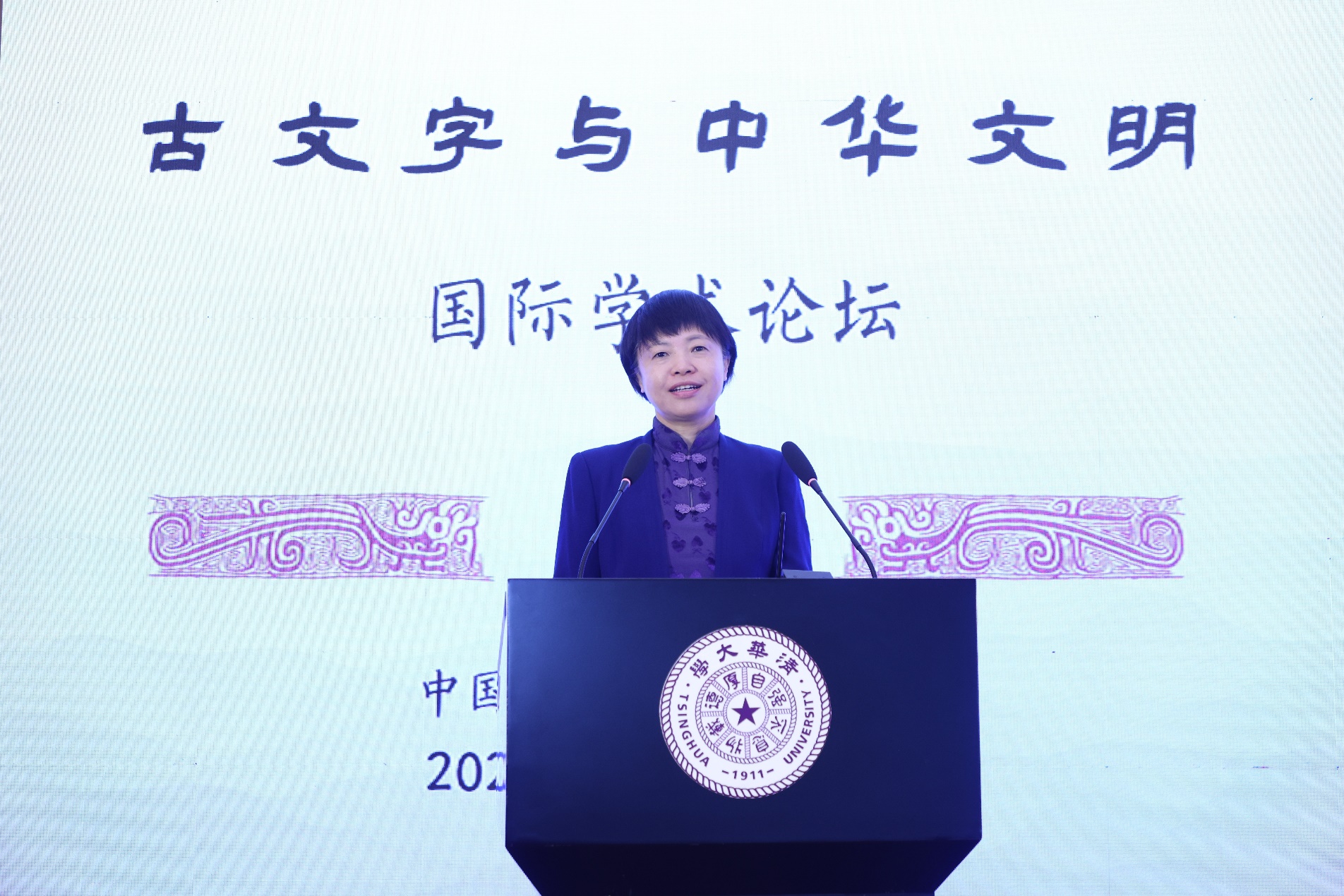 洪大用表示,习近平总书记高度重视语言文字与中华文明的传承发展,强调中国字是中国文化传承的标志,这种传承是真正的中华基因。清华大学举办此次论坛,邀请国内外古文字和传统文化研究领域的名师大家相聚清华园,以古文字和中华文明传承发展为题开展深入交流研讨,是古文字研究界的一件喜事、盛事、要事。洪大用介绍了国家社科基金多年来在资助古文字研究方面所做的工作,表示国家社科基金高度重视支持古文字研究工作,今后将在原有工作基础上持续稳定加强支持力度,推动汉字文明研究不断取得新进展新突破。围绕深入推进古文字研究领域的学科体系、学术体系、话语体系建设,洪大用提出四点希望:一是着力提升古文字学科群整体发展水平,形成与数字时代相适应的古文字研究的新方法、新范式;二是着力推出代表国家水准的原创性标志性成果,为推进文化复兴、建设中华民族现代文明贡献更大的学术力量;三是着力推动建立德才兼备、学术精湛的人才队伍,为不断推进学术创新提供坚实的人才支撑;四是着力加强国际学术合作、深化文明交流互鉴,为人类文明发展贡献中华民族的元素、智慧和力量。