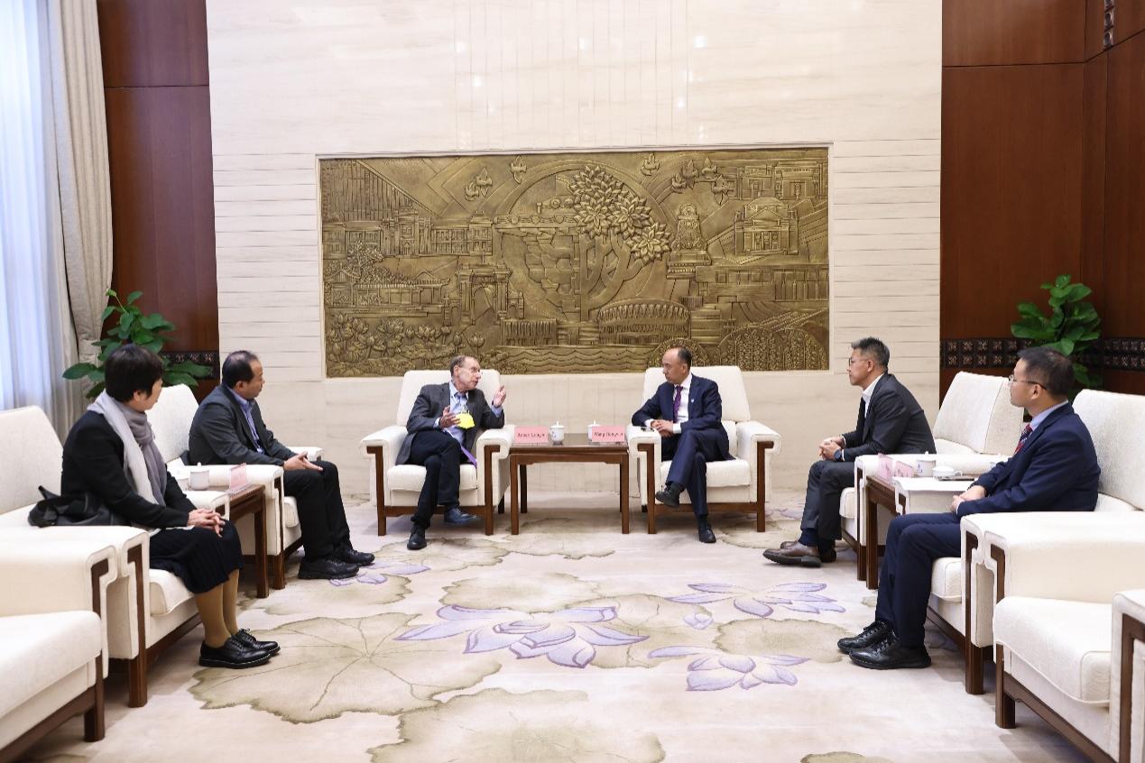 王宏伟在演讲前会见罗伯特·兰格一行,对其到访清华大学表示欢迎。他表示,与兰格教授这样的顶级科学家合作,对加强清华大学的学科建设、人才培养和科学研究具有重要的促进作用,有利于提高清华医学的科研水平和科研成果转化能力,也有利于两校合作与交流。