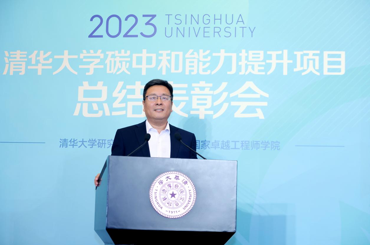 王希勤向长期关心支持学校发展的各界人士表示感谢。他指出,气候变化是国际社会普遍关心的一个重大全球性挑战,中国是应对气候变化多边进程的积极参与者和坚定维护者。党的二十大报告对“推动绿色发展,促进人与自然和谐共生”作出重要部署,要求“积极稳妥推进碳达峰碳中和”。清华大学始终把服务国家作为最高追求,深入践行习近平生态文明思想,努力为实现碳达峰碳中和目标提供人才保障和智力支持。碳中和能力提升项目正是学校落实国家“双碳”战略的具体行动,旨在培养高水平碳中和人才,强化产教融合和产教研协同创新。