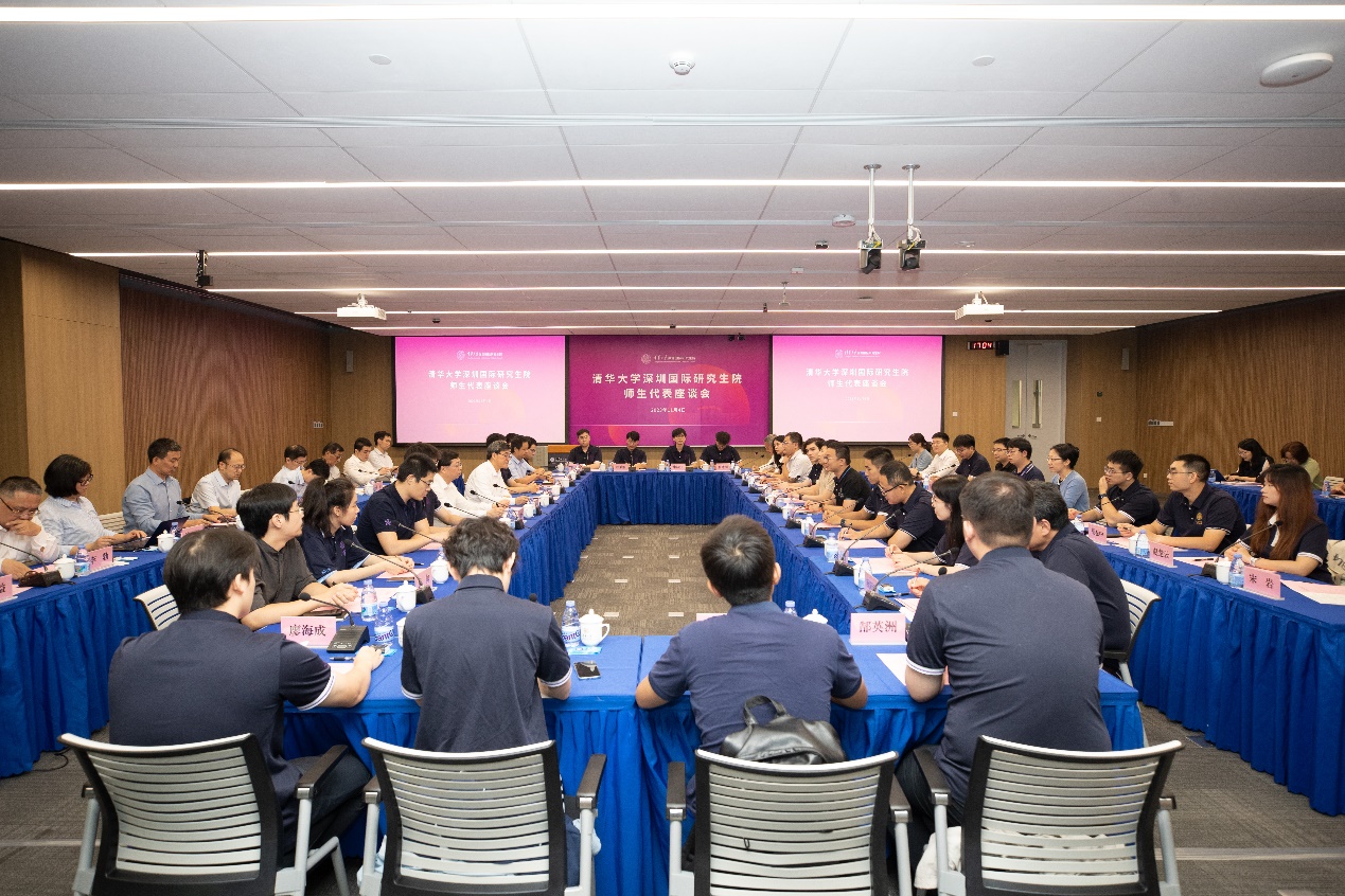 随后,邱勇与30余位师生代表座谈交流,听取大家在深圳国际研究生院工作学习的心得体会。邱勇说,深圳国际研究生院成立以来吸引了一批杰出人才,汇集了一批优秀学生,凝聚起干事创业的强大力量,从大家的发言中感受到开拓创新的干劲和不断提升的铸魂育人实效,让我们对办好深圳国际研究生院更有信心和底气。希望大家秉承自强不息、厚德载物的校训,践行行胜于言的校风,肩负使命、追求卓越,以迎难而上、创新敢为的勇气,展现新时代清华人的风采,共同推动深圳国际研究生院发展不断迈向新高度。