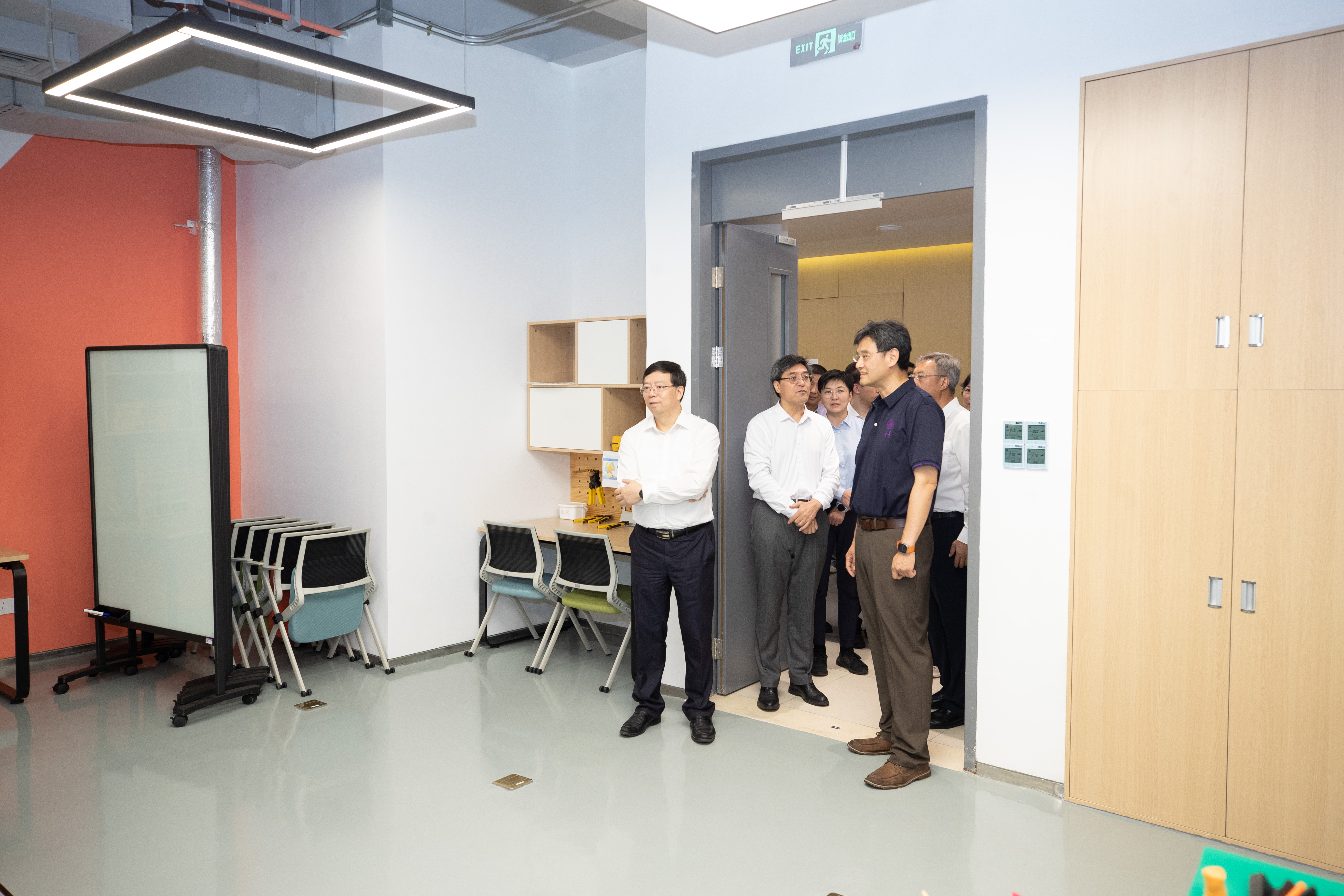 邱勇一行还参观了深圳国际研究生院国际一期共享创造空间、交叉创新工坊、公寓楼等,了解校园规划和科研教学平台建设等情况。