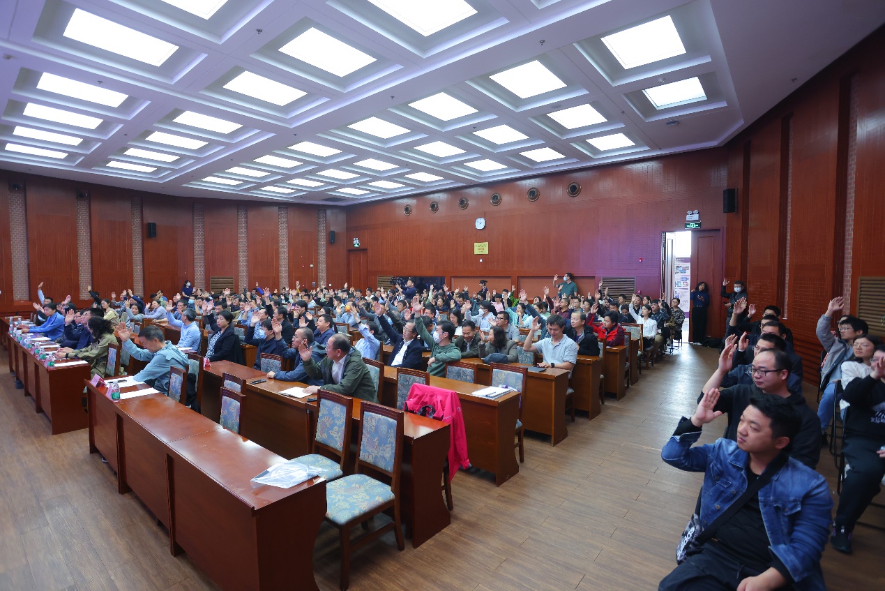 参会人员认真填写选票