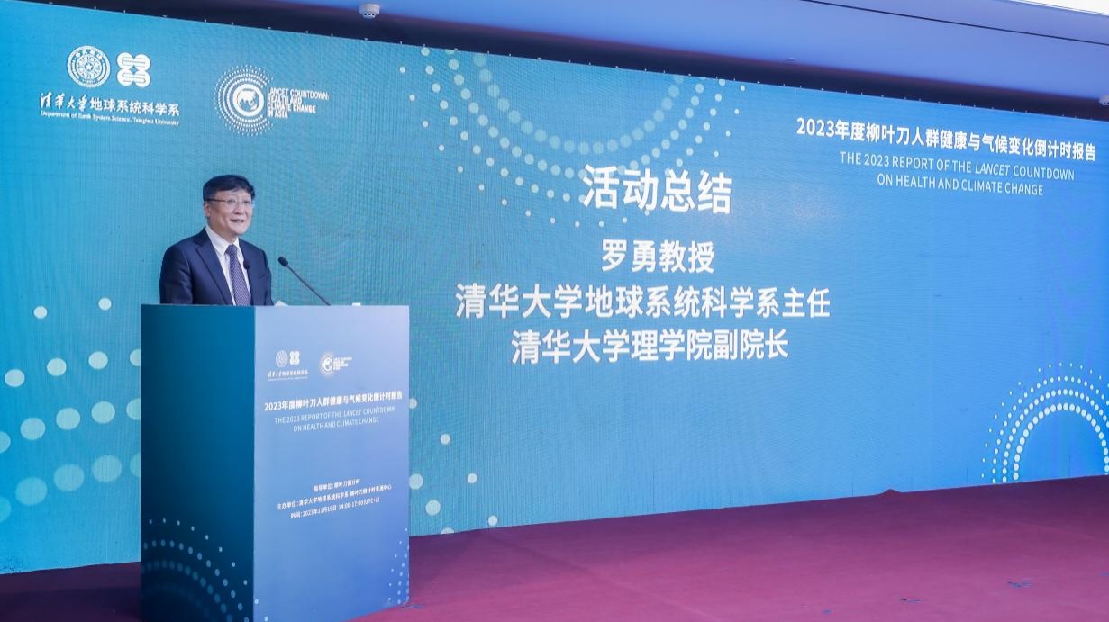 清华新闻网11月24日电 11月19日,2023年度《柳叶刀人群健康与气候变化倒计时报告》(以下简称“全球报告”)发布会在京召开,会上同期发布了由设在清华大学地学系的柳叶刀倒计时亚洲区域中心领衔撰写,来自国内外26个主要机构的76位专家共同完成的《2023中国版柳叶刀人群健康与气候变化倒计时报告》(以下简称“中国报告”)。发布会上,清华大学副校长曾嵘在线致辞。“柳叶刀倒计时”共同主席、香港大学副校长宫鹏,《柳叶刀》杂志亚洲区高级执行主编王辉(Helena Wang)现场参会并致辞。