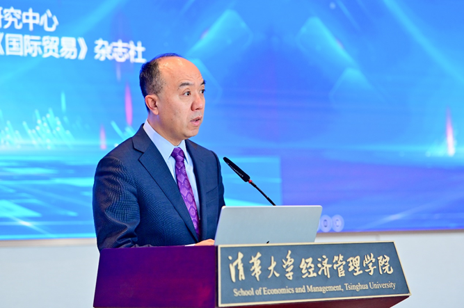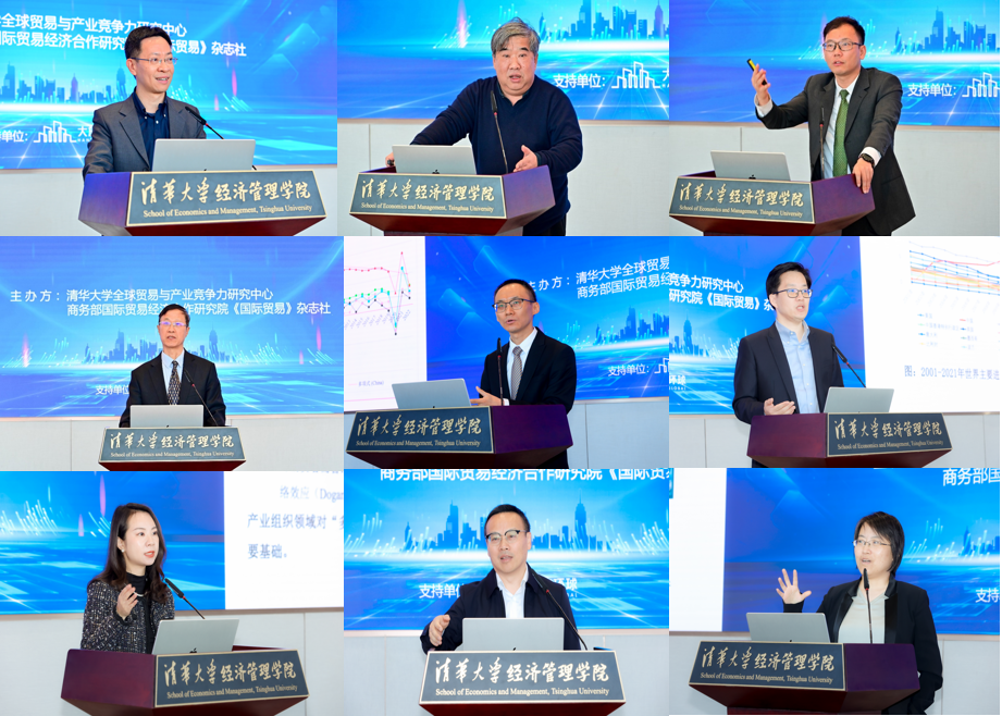 主旨演讲环节,辽宁大学校长余淼杰,对外经贸大学教授、原副校长林桂军,清华大学经济管理学院副院长、清华大学全球贸易与产业竞争力研究中心主任何平,中国国际贸易学会副会长李钢,商务部国际贸易经济合作研究院对外贸易研究所所长梁明,北京师范大学经济与工商管理学院教授、国际经济与贸易系主任魏浩,对外经济贸易大学教授、全球创新与治理研究院执行院长吕越,清华大学社会科学学院教授、清华大学全球贸易与产业竞争力研究中心副主任陈琪,中国社会科学院工业经济研究所副研究员江鸿等,分别就构建全面对外开放新格局、全球价值链重塑、国际货币体系改革、贸易强国建设、中国外贸韧性和竞争力、扩大进口、电商平台与出口、社科理论研究与政策研究、新兴产业国际竞争力等议题,展示研究成果并分享学术观点。