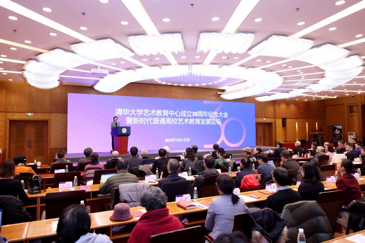 清华新闻网12月16日电(记者 曲田 摄影 杨艳宾 许德刚)12月15日上午,清华大学在主楼接待厅举行艺术教育中心成立30周年纪念大会。校党委书记邱勇、中国艺术教育促进会驻会副会长万丽君、北京市教委二级巡视员王军出席并讲话。国家大剧院副院长、清华大学艺术教育中心评聘委员会委员张尧,中国高等教育学会原会长瞿振元,清华大学副校长彭刚,清华大学党委原副书记、北京电影学院党委原书记、原院长王凤生,清华大学党委原副书记胡显章,清华大学原副校长胡东成,校务委员会副主任王岩等出席大会。艺术教育中心主任赵洪主持大会。