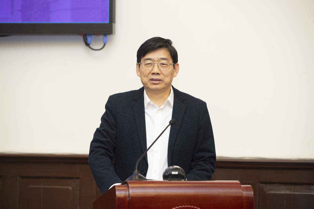 张超作汇报,陈煜波、曾志代表院系发言(从左至右)