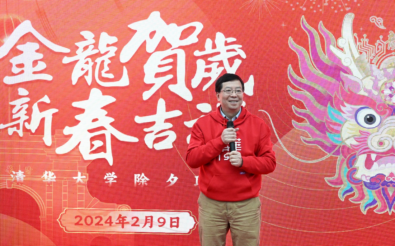 校党委书记邱勇代表学校向大家致以节日的问候,向全校师生员工过去一年的辛勤付出道一声辛苦了。邱勇表示,2023年对清华大学来讲是不平凡的一年,全校师生员工面对困难不回避,面对挑战不退缩,不断在教学科研、国际交流合作、校园建设等方面取得新成绩,不断开拓新局面。2024年对清华大学来讲是具有特殊意义的一年,学校已经确立了高质量发展的主题,制定并实施了《清华大学全面贯彻落实党的二十大精神行动方案》。希望全校师生员工在2024年龙年继续秉持自强不息、厚德载物的校训,行胜于言的校风,持续拼搏,再攀高峰,不断实现新的突破。