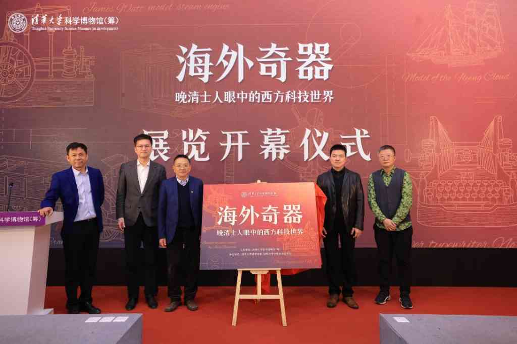 嘉宾观看了“海外奇器”展览宣传片。彭刚、娄玮、阮草、吴国盛、清华大学艺术博物馆常务副馆长杜鹏飞共同为展览揭幕。