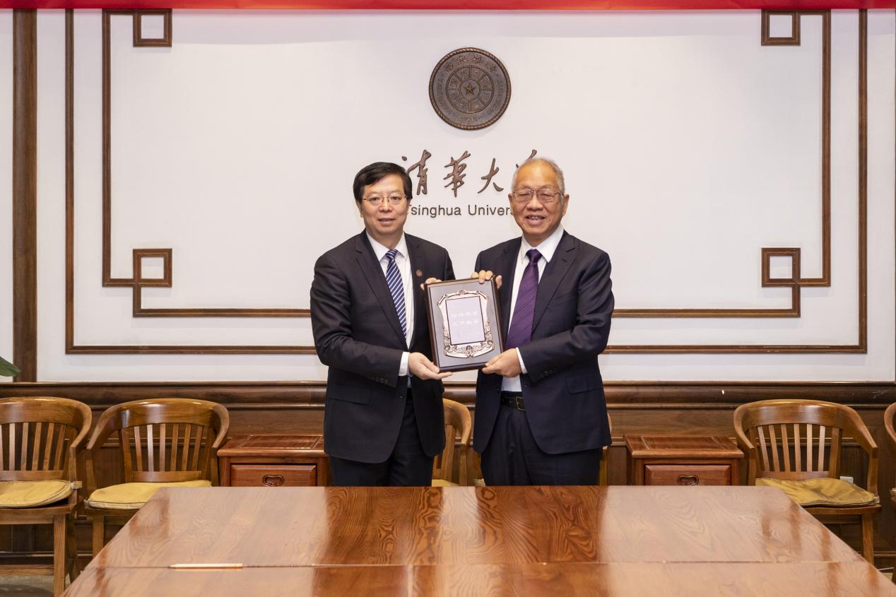 丘成桐和袁桅签署捐赠协议,邱勇为丘成桐颁发捐赠纪念牌。