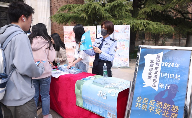 4月12日,清华大学多个部门协同发力,联合属地公安机关在大礼堂前开展国家安全主题系列宣传活动,通过展板展示、有奖答题、现场讲解、发放资料等方式,普及维护国家安全的相关法律知识,营造了积极学习总体国家安全观、深入践行“维护国家安全,你我共同守护”的浓厚氛围,得到广大师生积极响应和热情参与。