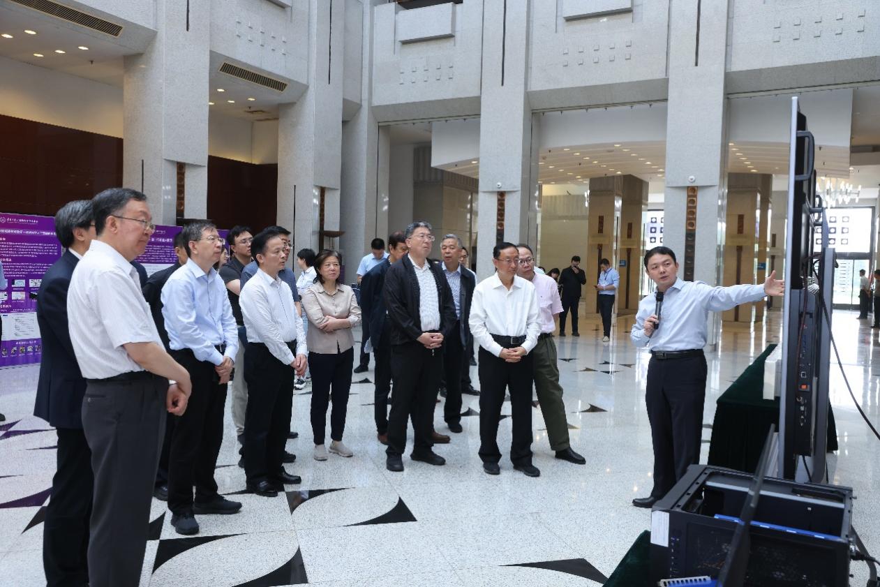 在位于中央主楼三层的成像与智能技术实验室,雒树刚一行详细了解了实验室近年来取得的颠覆性、原创性交叉科研创新成果,并就光电智能计算、高分辨光场智能成像显微仪器、十亿像素自适应光场智能成像等科学研究的理论基础、前沿创新和应用场景情况等展开交流。