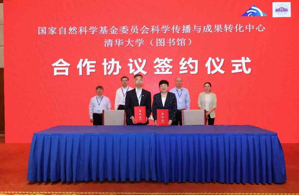 会上,清华大学图书馆馆长金兼斌与国家自然科学基金委科学传播中心主任彭杰签署了数据合作协议。国家自然科学基金委办公室(诚信办)主任王翠霞主持签约仪式。