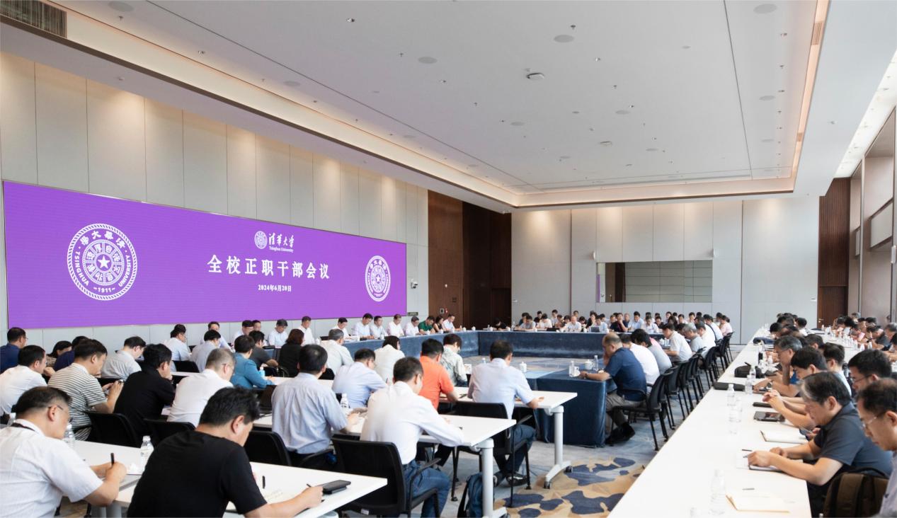 清华新闻网6月23日电(记者 田姬熔 摄影 李派)6月20日下午,清华大学2024年春季学期第二次全校正职干部会议在经管新楼召开。会议传达学习了习近平总书记重要讲话重要指示重要回信精神,全面总结了上半年学校事业发展情况,并对下一阶段重点工作进行部署。校党委书记邱勇主持会议。校长李路明及杨斌、过勇、郑力、向波涛、彭刚、姜培学、许庆红等校领导班子成员出席会议。