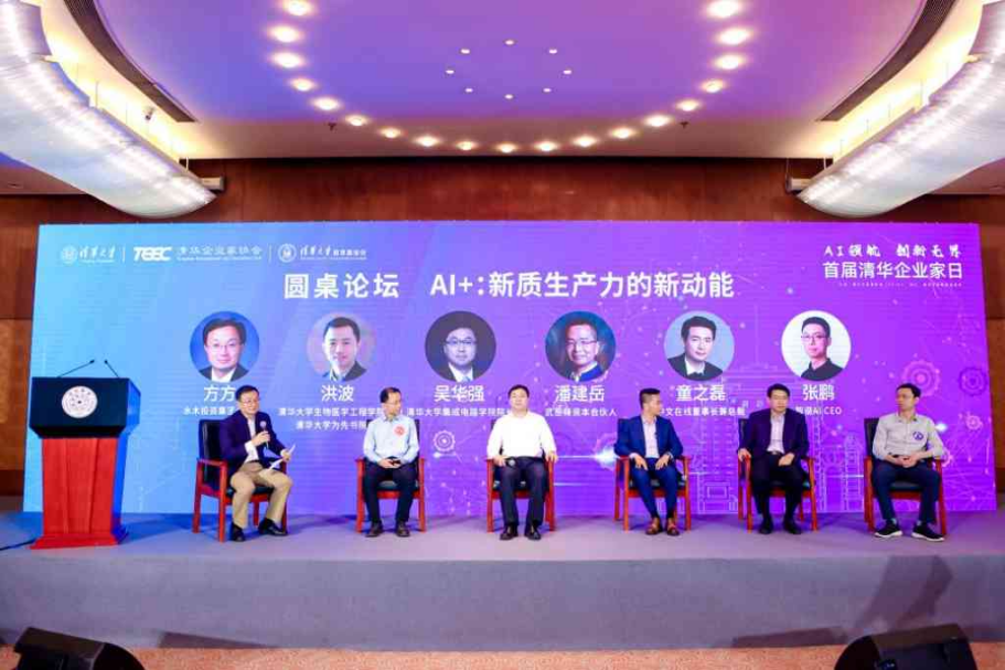 “AI+:新质生产力的新动能”圆桌论坛上,水木投资集团合伙人方方,清华大学生物医学工程学院教授、为先书院院长洪波,清华大学集成电路学院院长吴华强,武岳峰资本合伙人潘建岳,中文在线董事长兼总裁童之磊,智谱清言CEO张鹏共同探讨交流了AI如何推动新质生产力发展,展望了AI如何催生新业态并推动跨界融合、知识工作产业自动化、创新产品与服务等。