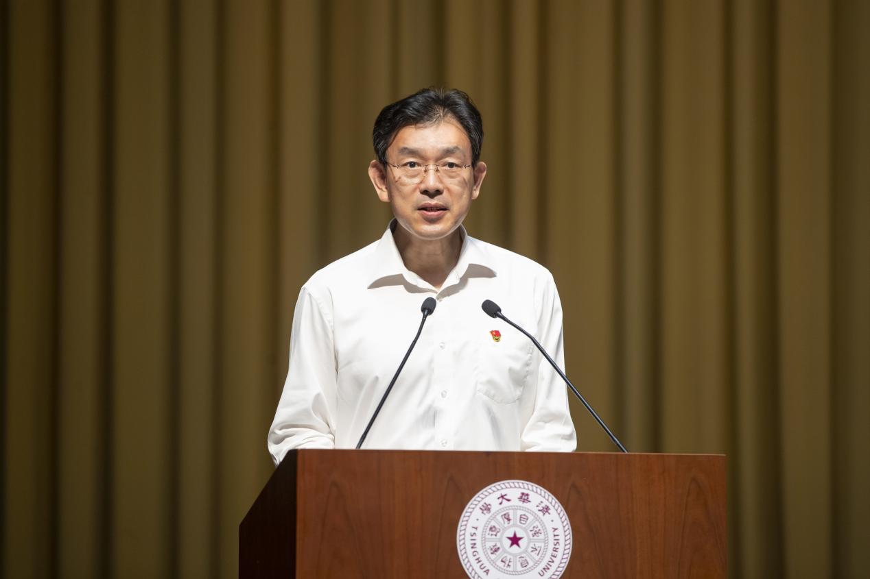 清华新闻网7月2日电(记者 曲田 徐子越 摄影 李派 杨艳宾)6月30日下午,清华大学举行庆祝中国共产党成立103周年暨新党员宣誓大会。校党委书记邱勇在大会上发表题为“坚持严的标准、锤炼实的作风、维护铁的纪律 以高质量党建引领学校高质量发展”的讲话,校党委副书记、校长李路明主持会议。校领导向波涛、杨斌、过勇、郑力、赵罡、彭刚、曾嵘、姜培学、许庆红、王宏伟等出席会议。
