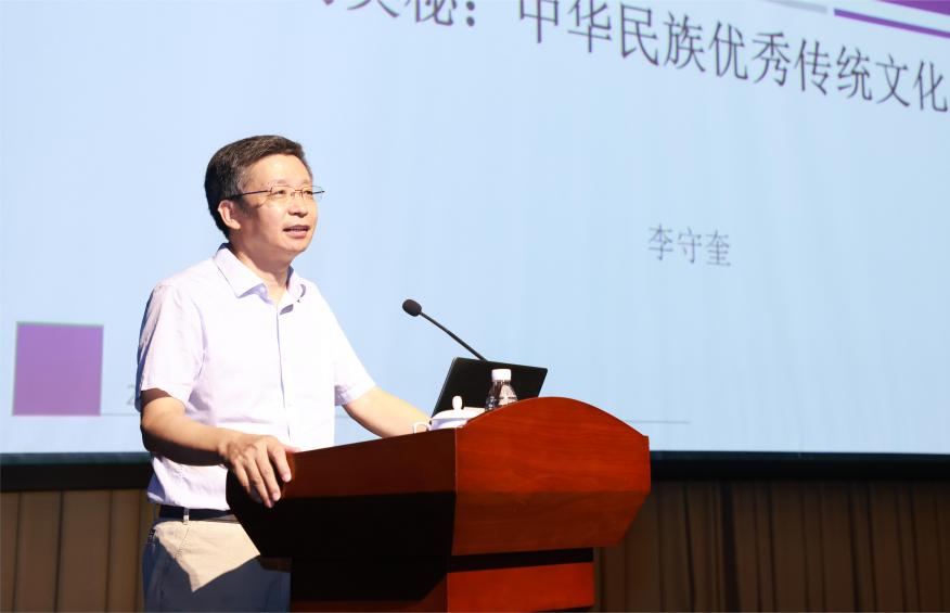 清华新闻网7月3日电(记者 吴一凡 摄影 常志东)6月27日上午,由校机关党委主办的“荷声讲坛”系列报告会第五十三讲在蒙民伟音乐厅举行。清华大学人文学院教授、中国文字学会副会长李守奎应邀作题为“汉字的奥秘:中华民族优秀传统文化的基因”的主题报告。校机关党委常务副书记孙海涛主持报告会。