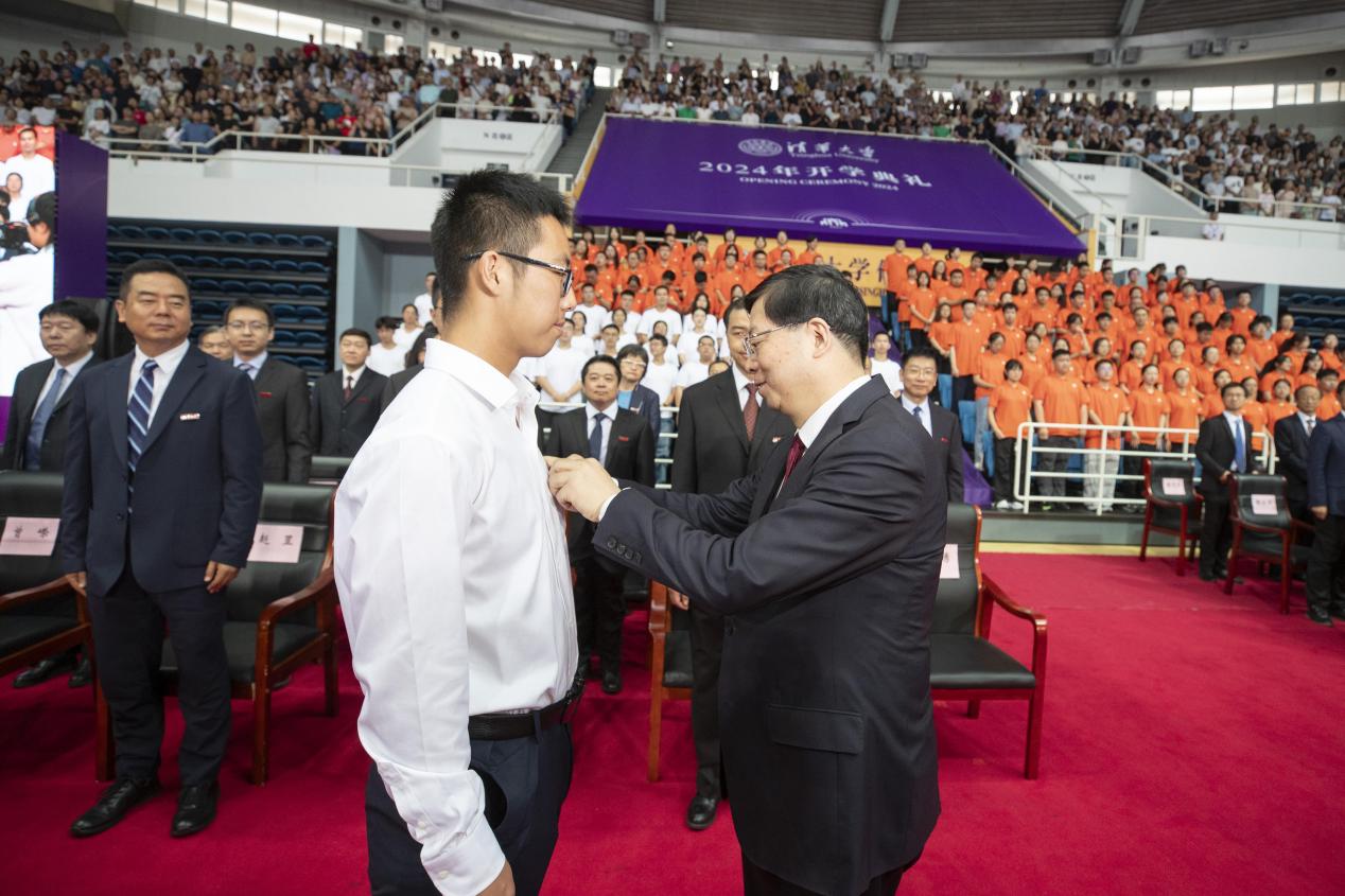典礼后,邱勇以“树立远大理想,赓续光荣传统 为全面建设社会主义现代化强国贡献青春力量”为主题讲授了2024级本科生新生开学第一课。