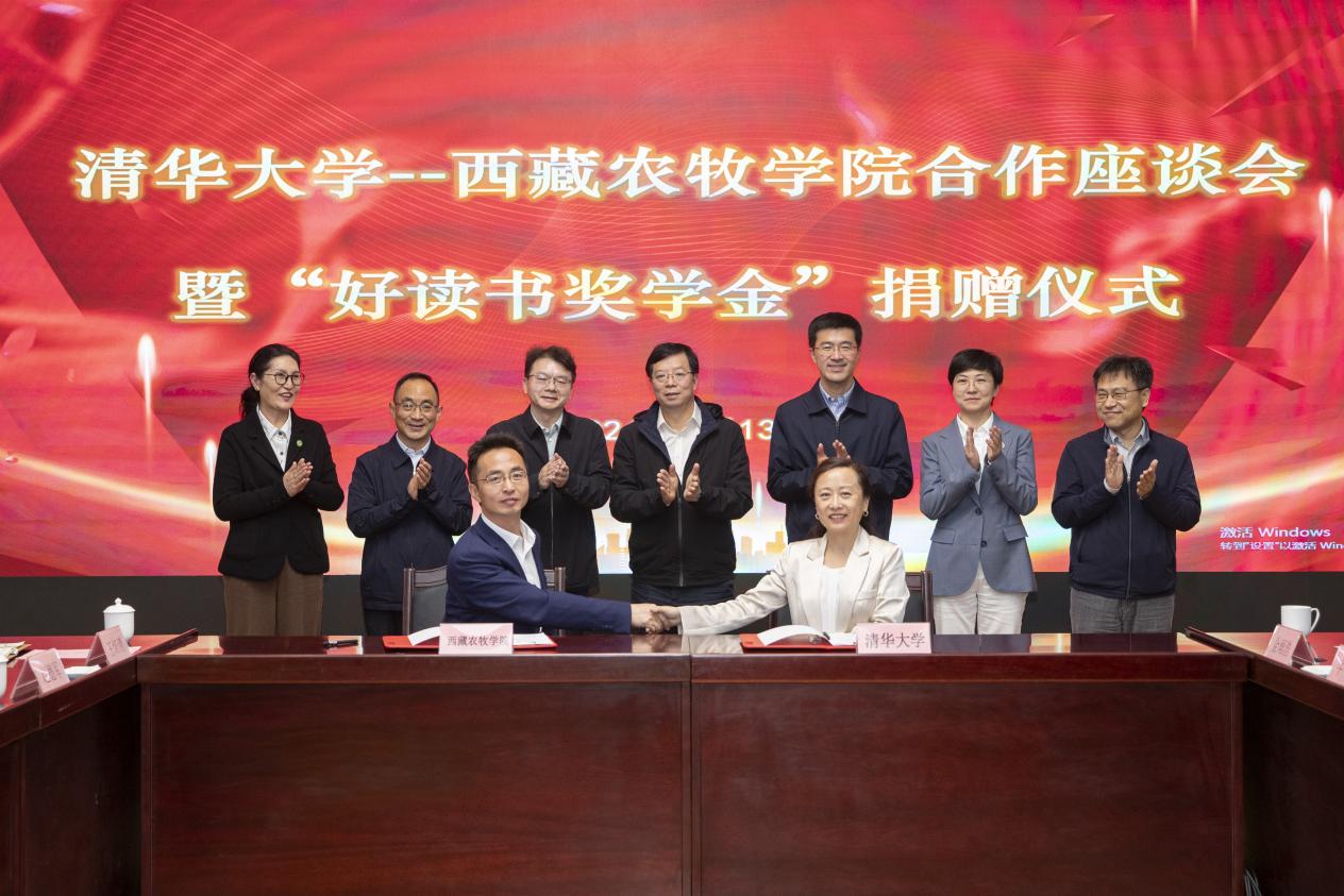 邱勇一行还调研了位于林芝市的西藏农牧学院,与学院党委书记娄源冰、院长强巴央宗就深化两校在科研创新、师生交流等方面的合作进行了探讨。西藏自治区党委教工委副书记、教育厅党组书记于涵一同调研。清华大学捐赠西藏农牧学院“好读书奖学金”仪式同期举行。2001年,杨绛先生用她和钱钟书先生的稿酬在清华大学教育基金会设立“好读书”奖学金。自2020年起,经杨绛先生遗嘱执行人同意,该奖学金资助范围先后向清华大学对口支援的西部高校青海大学、新疆大学辐射。此次捐赠西藏农牧学院,旨在鼓励该校学生“好读书、读好书”,努力学习、成才报国。