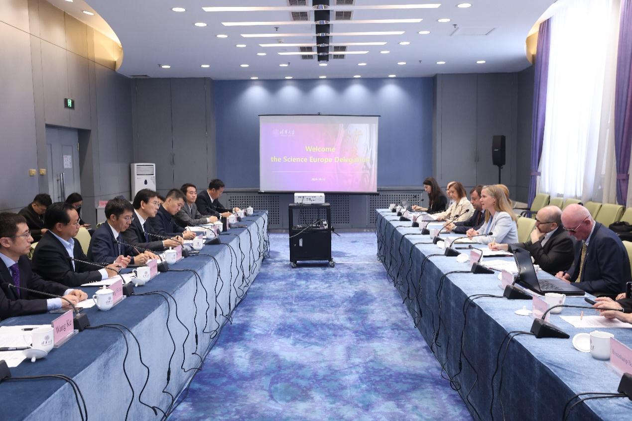 李路明代表清华大学对代表团一行到访表示欢迎,并介绍了学校在国际科研合作、交叉学科研究、人工智能赋能教育教学等方面的发展情况。他说,教育、科技、人才是中国式现代化的基础性、战略性支撑。清华大学高度重视国际学术交流和教育科研合作,始终以开放的态度培养具有国际视野的高素质创新人才,为推动全球教育事业发展贡献更多中国力量。期待未来与科学欧洲代表团进一步深化在科学研究、人才培养、人员交流等方面的合作,为全球科技进步和推动构建人类命运共同体作出更多贡献。