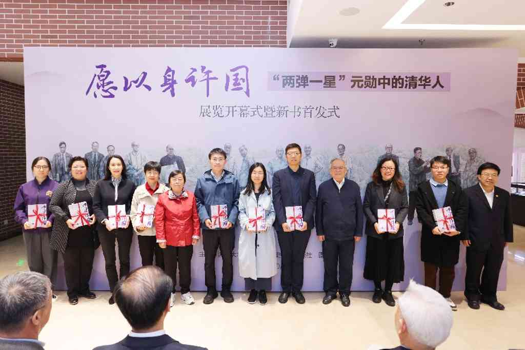 随后,校史编委会委员、校党委原常委、原党办主任、档案馆原馆长白永毅,校史编委会委员、原副秘书长、校史研究室原主任田芊与邱显清代表清华大学出版社共同向清华师生代表赠送了《愿以身许国——“两弹一星”元勋中的清华人》一书。