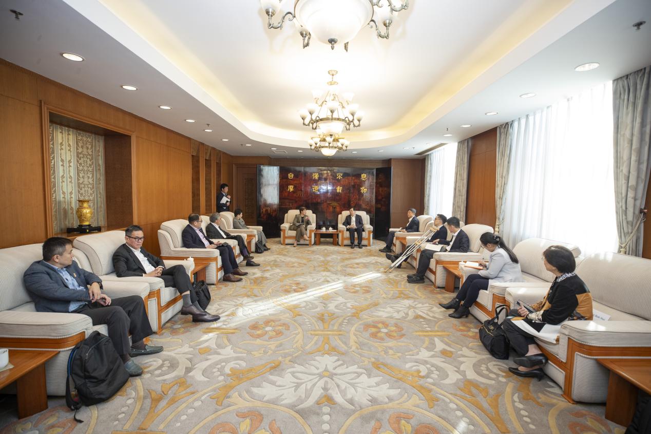 会见后,双方举行了座谈交流,杨斌介绍了学校整体发展情况、黄天荫介绍了学校医学院建设及发展情况,双方围绕医学学科建设发展及未来两校科研创新合作等议题进行了深入探讨与交流。座谈结束后,代表团一行参观了清华大学成像与智能技术实验室和苏世民书院。