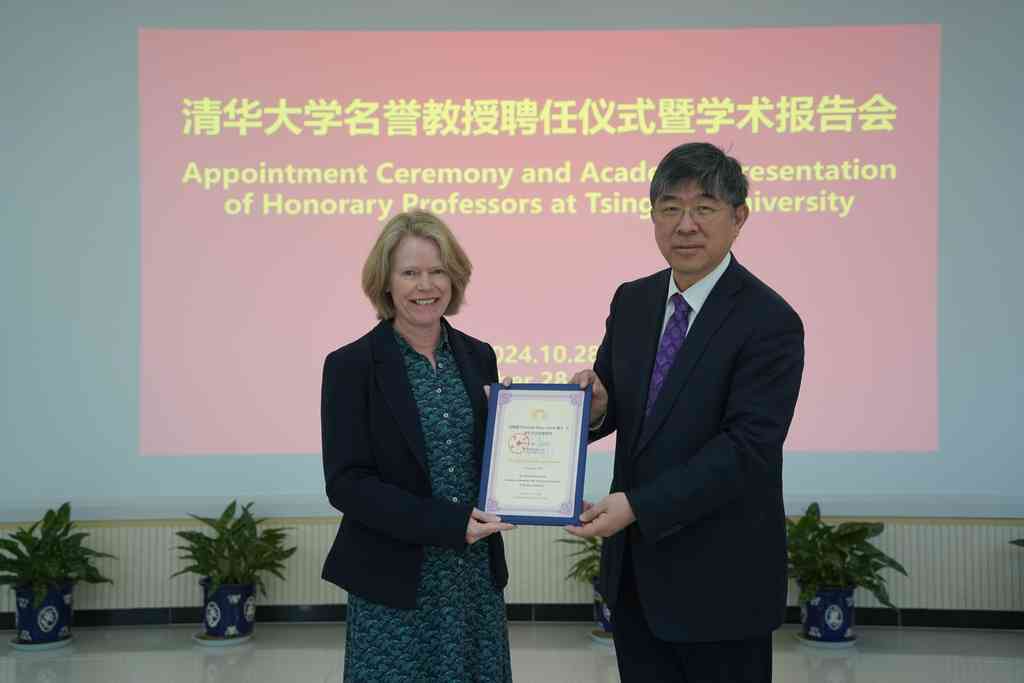 黛博拉·格里夫斯回顾了与清华大学水利系的合作历程,并表示,受聘成为清华大学名誉教授是莫大荣幸,期待未来与清华师生携手推动海上可再生能源研究的进步。