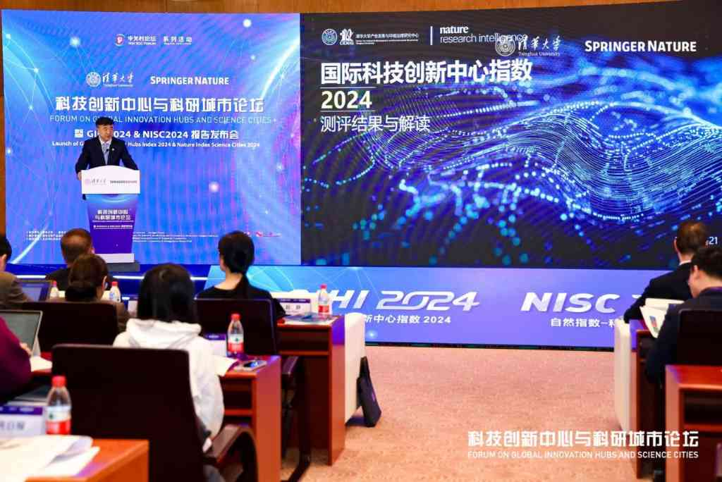 清华新闻网11月22日电 11月21日上午,2024中关村论坛系列活动——科技创新中心与科研城市论坛在清华大学举行,论坛由清华大学联合施普林格·自然(Springer Nature)共同主办,清华大学产业发展与环境治理研究中心承办。论坛上,清华大学产业发展与环境治理研究中心发布了《国际科技创新中心指数2024》(GIHI2024)报告,施普林格·自然发布了《自然》增刊——《自然指数-科研城市2024》(NISC2024)。清华大学副校长杨斌,施普林格·自然大中华区总裁安诺杰(Arnout Jacobs)出席论坛并致辞。