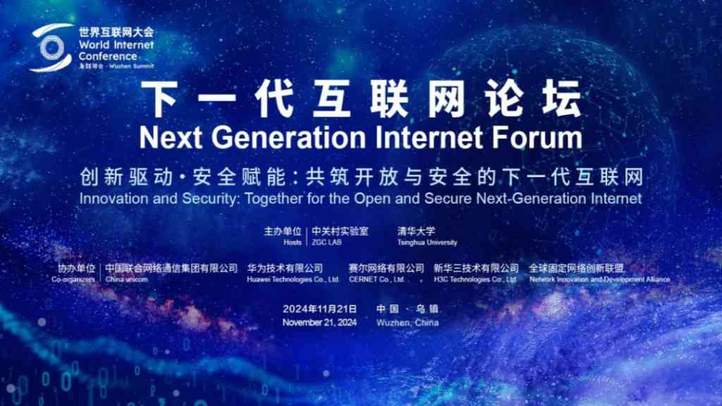 下一代互联网论坛由中关村实验室、清华大学联合主办,中国联通有限公司、华为技术有限公司、赛尔网络有限公司、新华三技术有限公司、全球固定网络创新联盟等单位协办。国家有关部委领导,国内外知名专家学者和企业家代表等百余人参会。