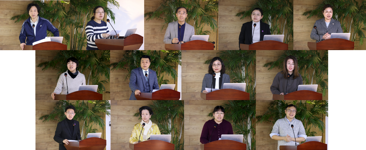 饶培伦、张敏、梁正、汪潇潇、李宇红、董羽、燕勇、方艳华、付亚男、李佚凡、李佩、杨丽娜、唐昆依次作工作汇报(从左至右,从上至下)