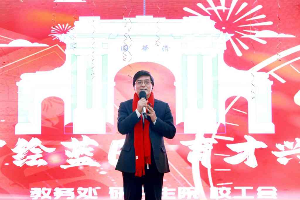 彭刚对师生们过去一年的辛勤付出和积极贡献表示感谢,并向大家致以新年的美好祝愿。他强调,学校正处于发展的关键时期,全校师生团结一心,在教学、科研等各个领域均取得了显著成就。教书育人是教师的根本任务,也是学校发展的坚实基石。为进一步加强教师队伍建设,提升教学能力,学校将持续加大投入,并着力提高年轻教师的教学能力和学术水平,同时也将继续坚守教育理念,不断深化教学改革,为培养更多优秀人才、为国家和社会作出更大贡献而不懈努力。