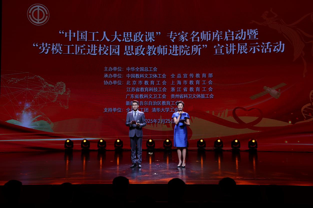 清华新闻网2月27日电(记者 黄思南 摄影 孙波)2月25日,由中华全国总工会主办,中国教科文卫体工会、全总宣传教育部承办的“中国工人大思政课”专家名师库启动暨“劳模工匠进校园 思政教师进院所”宣讲展示活动在清华大学蒙民伟音乐厅举行。全国总工会党组书记、副主席、书记处第一书记徐留平出席活动并宣布“中国工人大思政课”专家名师库启动。清华大学党委书记邱勇在活动前与徐留平会面交流,双方围绕加强思想政治引领和高技能人才培育等工作交换了意见。校党委常务副书记、工会主席向波涛出席活动并致辞。
