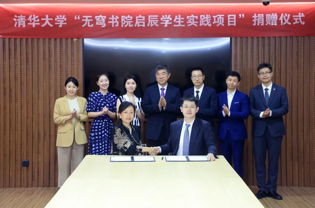 清华新闻网6月19日电 6月17日,清华大学“无穹书院启辰学生实践项目”捐赠仪式在书院管理中心举行。铭利丰泰集团有限公司总经理马东、夫人徐淑杰和家人,1992级校友、世纪互联集团公司轮值总裁王世琪,清华大学校务委员会副主任、无穹书院院长郑力等出席仪式,教育基金会秘书长袁桅主持仪式。
