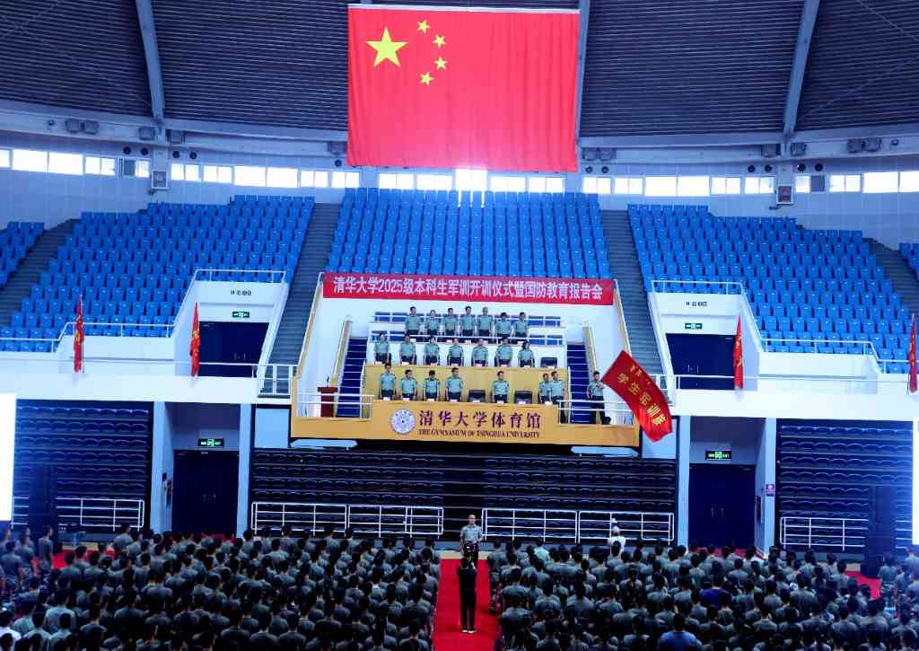 2025级本科生军训指挥部成员、各院系带队教师和辅导员、2025级新生,以及由陆军防化学院官兵、清华大学飞行学员班和优秀退役大学生士兵组成的全体教官团队共4000余人参加开训仪式。