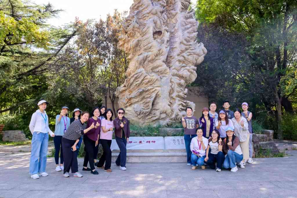 在第二个打卡点综合体育馆南门对面附近的“两弹一星”精神刻石前,教职工们瞻仰学习,传承、践行“两弹一星”精神。在第三个打卡点校史馆序厅内,教职工们参观“烽火弦歌——抗战时期的清华”专题展,铭记历史、缅怀英烈。