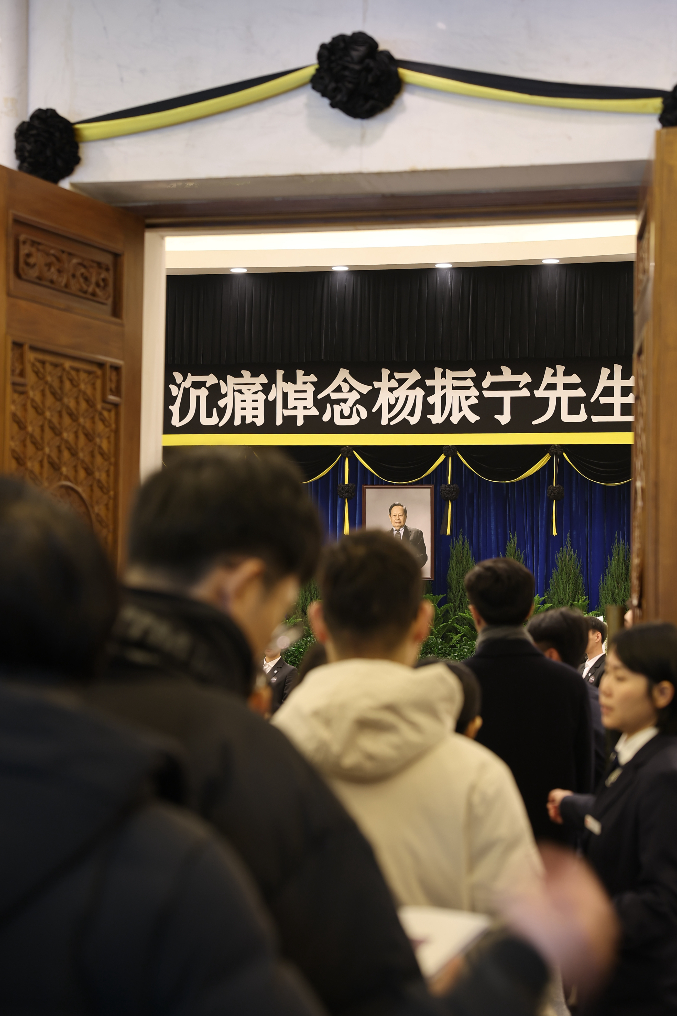 党和国家领导人,杨振宁先生亲属、生前友好,清华大学全体校领导、师生校友和社会各界人士前往送别。大家在哀乐声中缓步来到杨振宁先生的遗体前肃立默哀,向杨振宁先生的遗体三鞠躬,并向杨振宁先生亲属表示深切慰问。